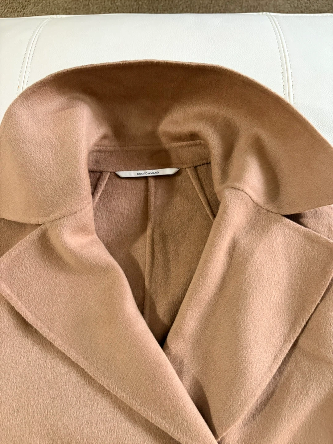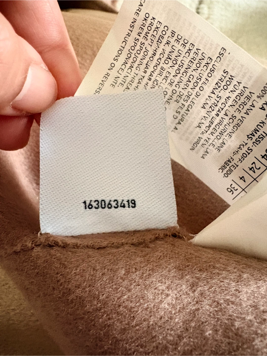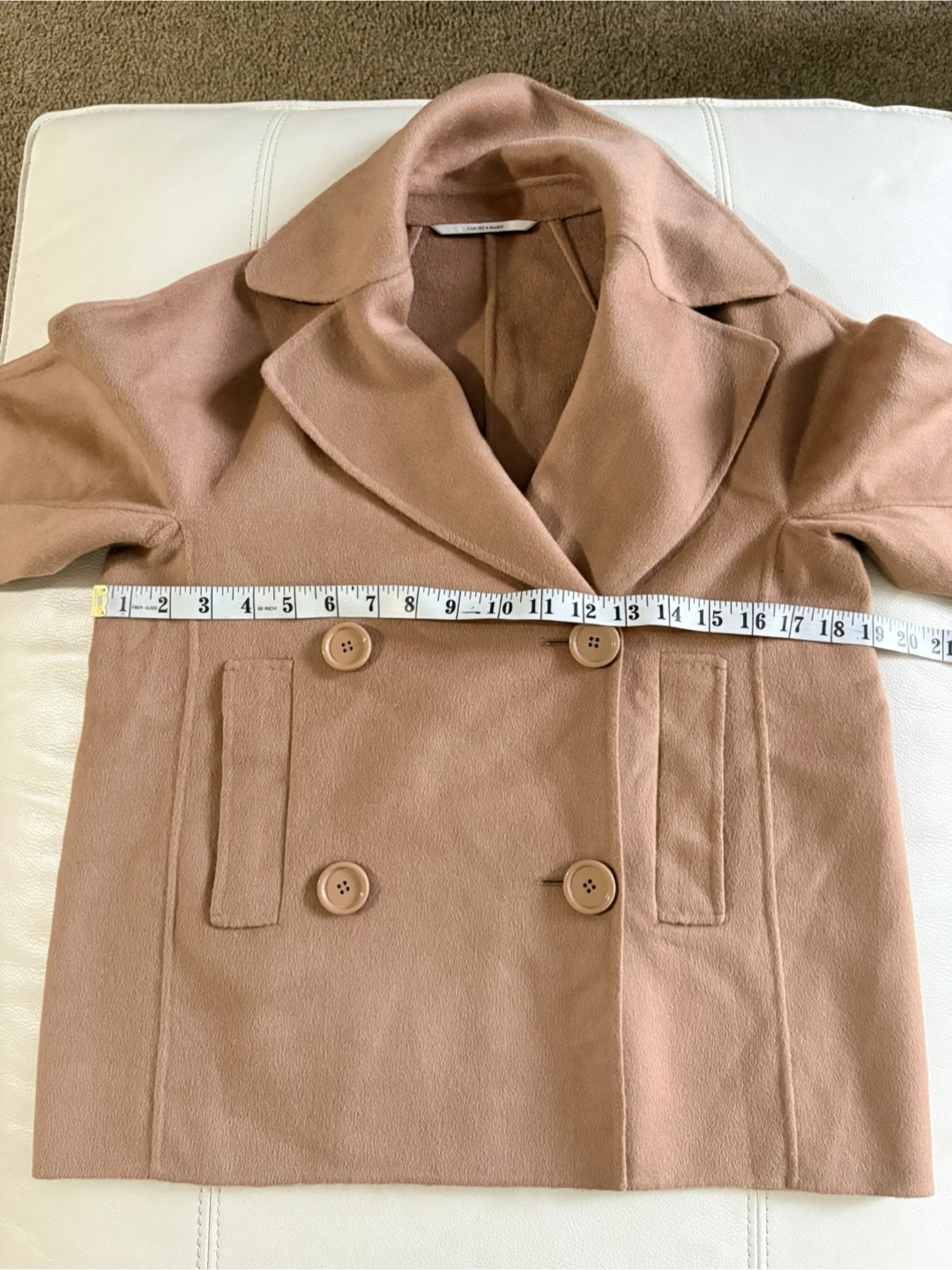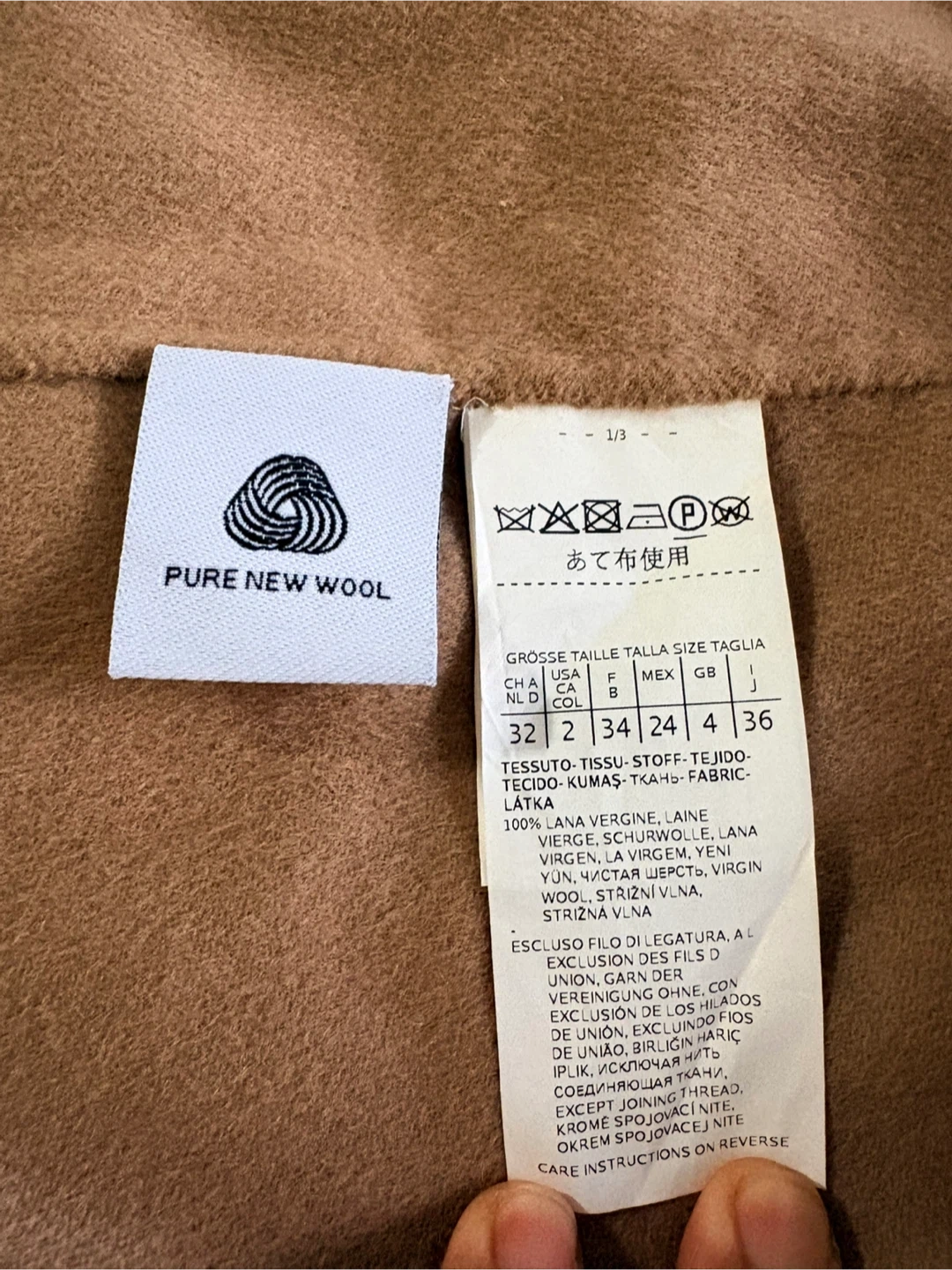 Here's a stylish Max Mara jacket in a lovely beige colour. It's made from a wool and has a classic double-breasted design. The jacket is in great condition and ready to add a touch of elegance to your wardrobe