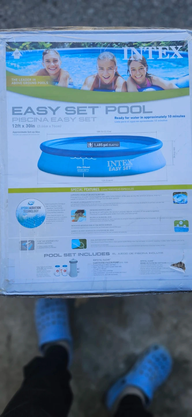 Get ready for summer fun with this Intex Easy Set Pool! It's 12ft x 30in (3.66m x 76cm), perfect for cooling off in the backyard. The pool is designed for quick and easy setup, so you can start swimming in no time. It holds 1,485 gallons (5,621L) of water. Includes a Krystal Clear cartridge filter pump!
