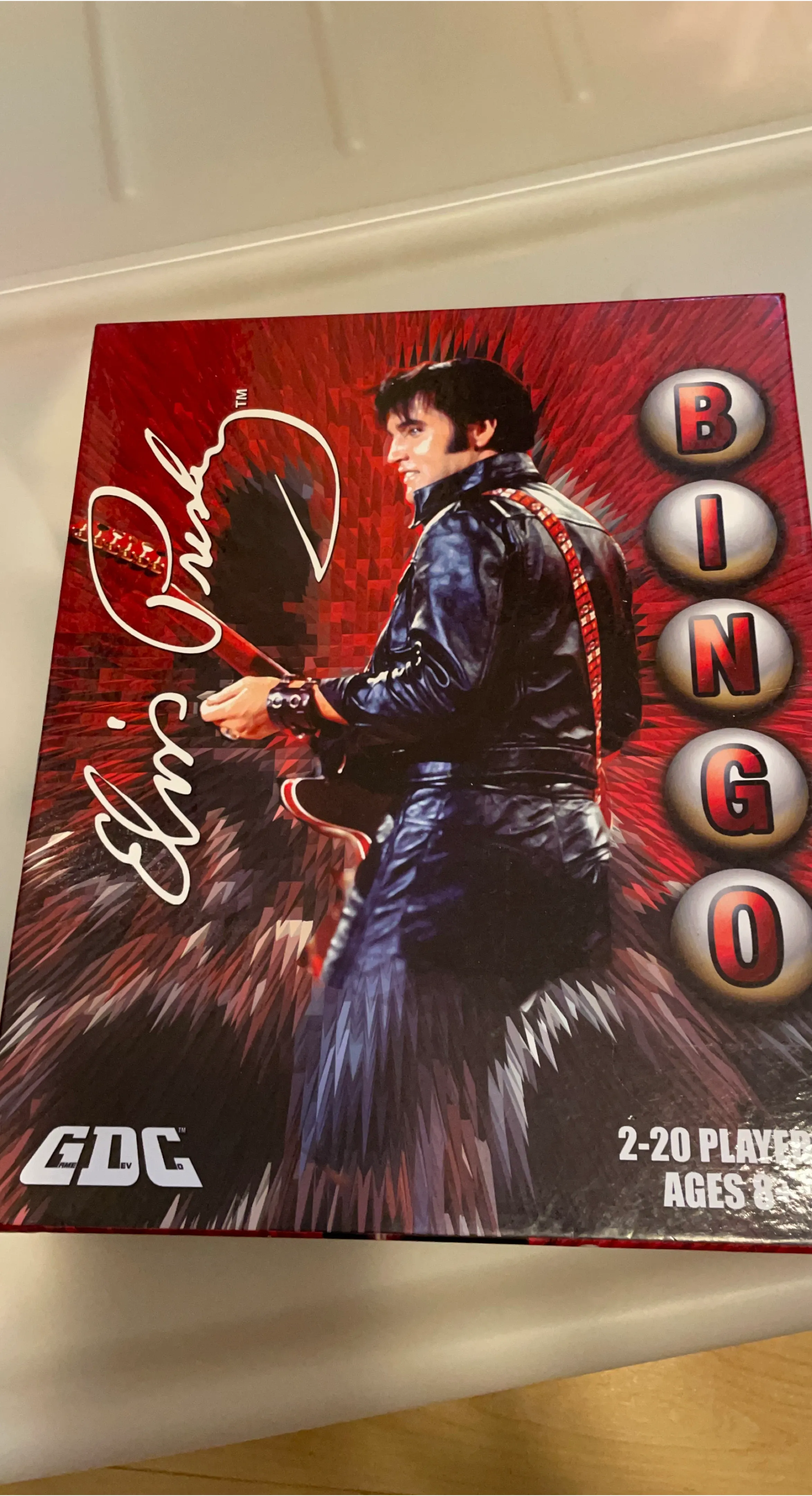 Selling an Elvis Presley Bingo game! The box shows Elvis with his guitar, and the game is for 2-20 players, ages 8+. Great for family game night or an Elvis fan