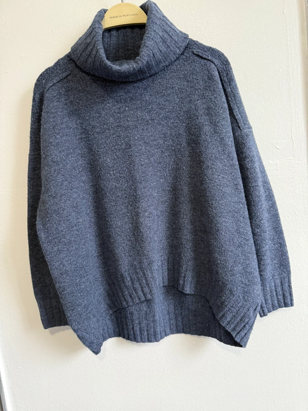 Cozy up in this stylish blue turtleneck sweater! It's in great condition and ready to keep you warm this season. The sweater was made in Portugal, ensuring high-quality craftsmanship and design