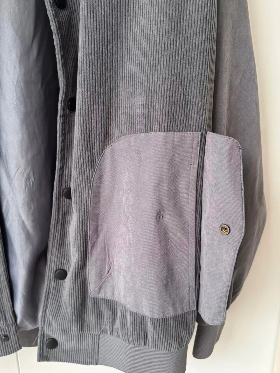 Features a unique mixed-fabric design with ribbed corduroy body and soft contrasting sleeves, giving it a casual yet elevated streetwear look.