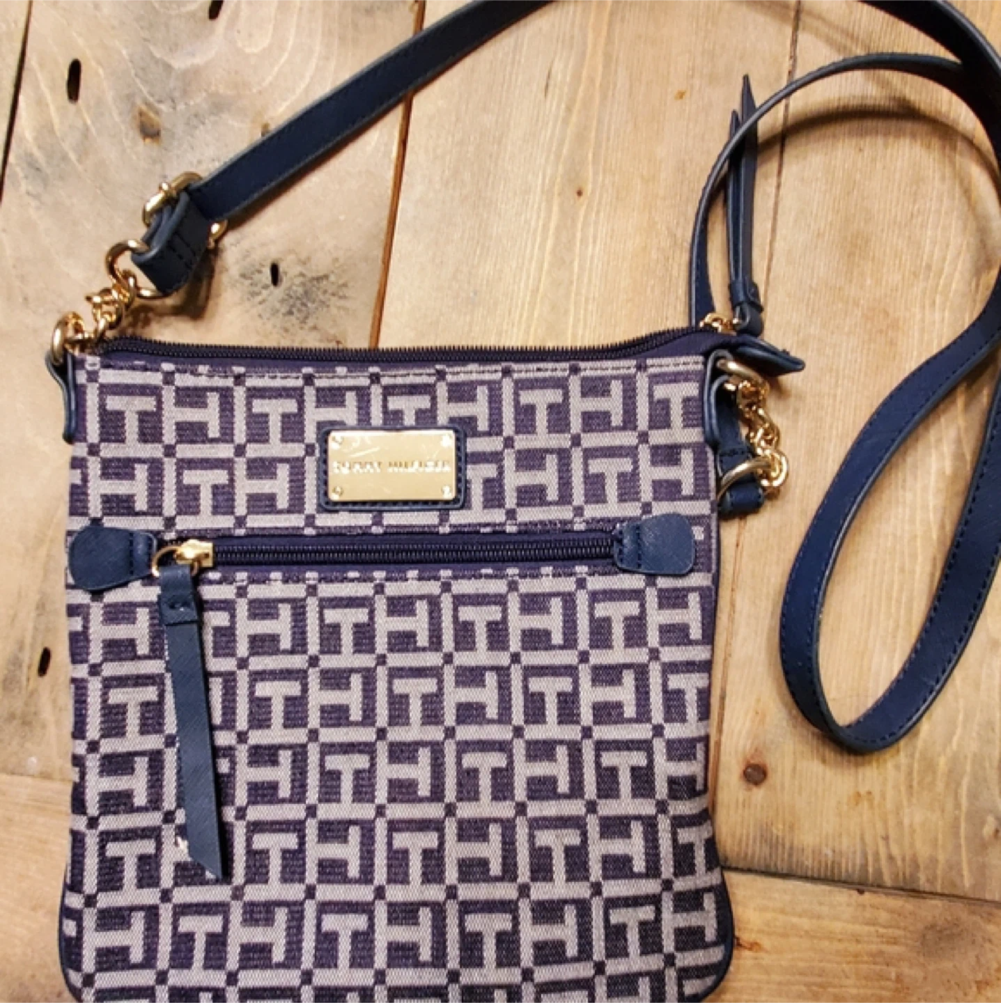 Tommy Hilfiger crossbody bag in great condition! It features a stylish pattern and a convenient size for everyday use. The bag has a zipper closure and an adjustable strap.
