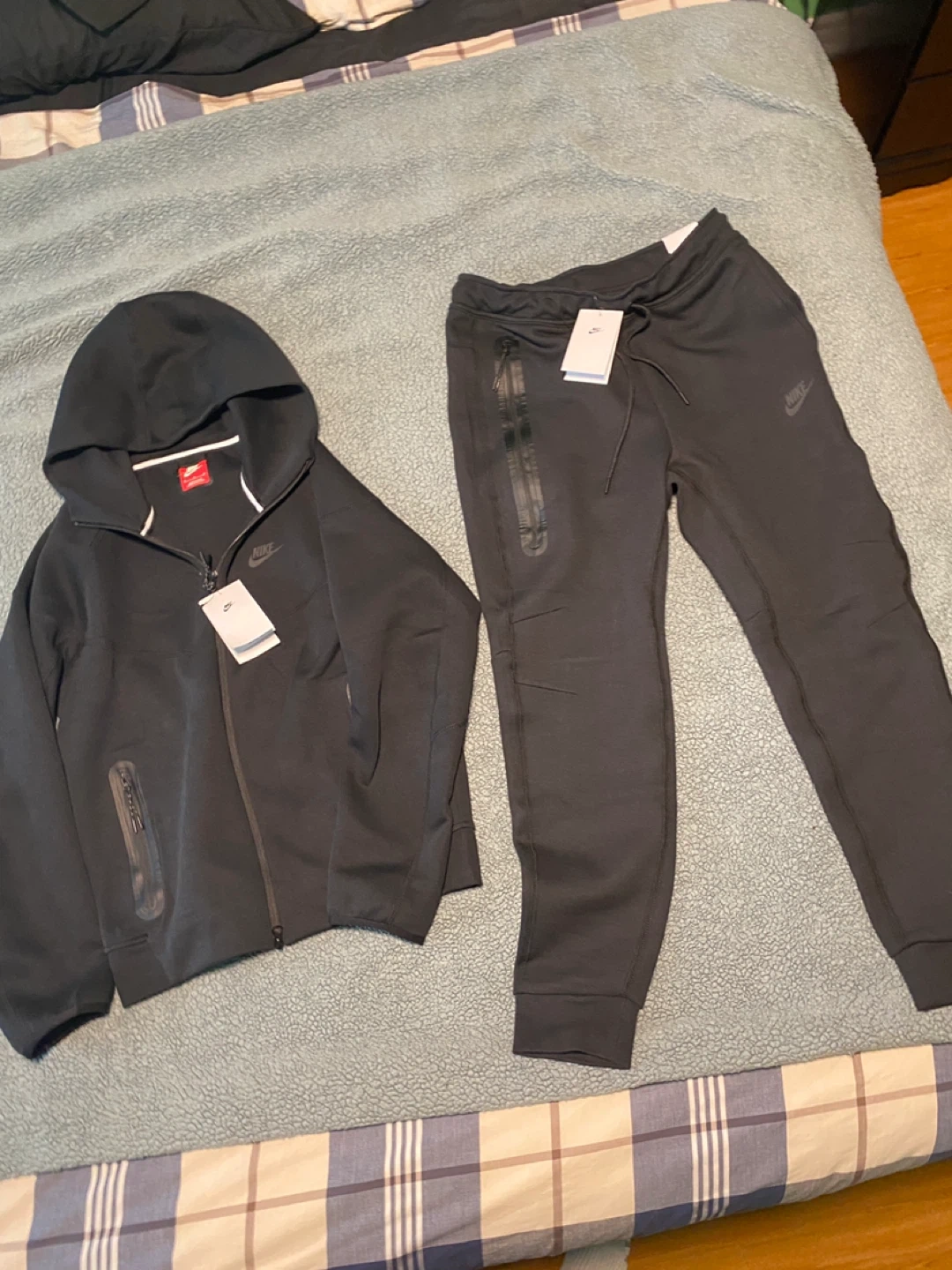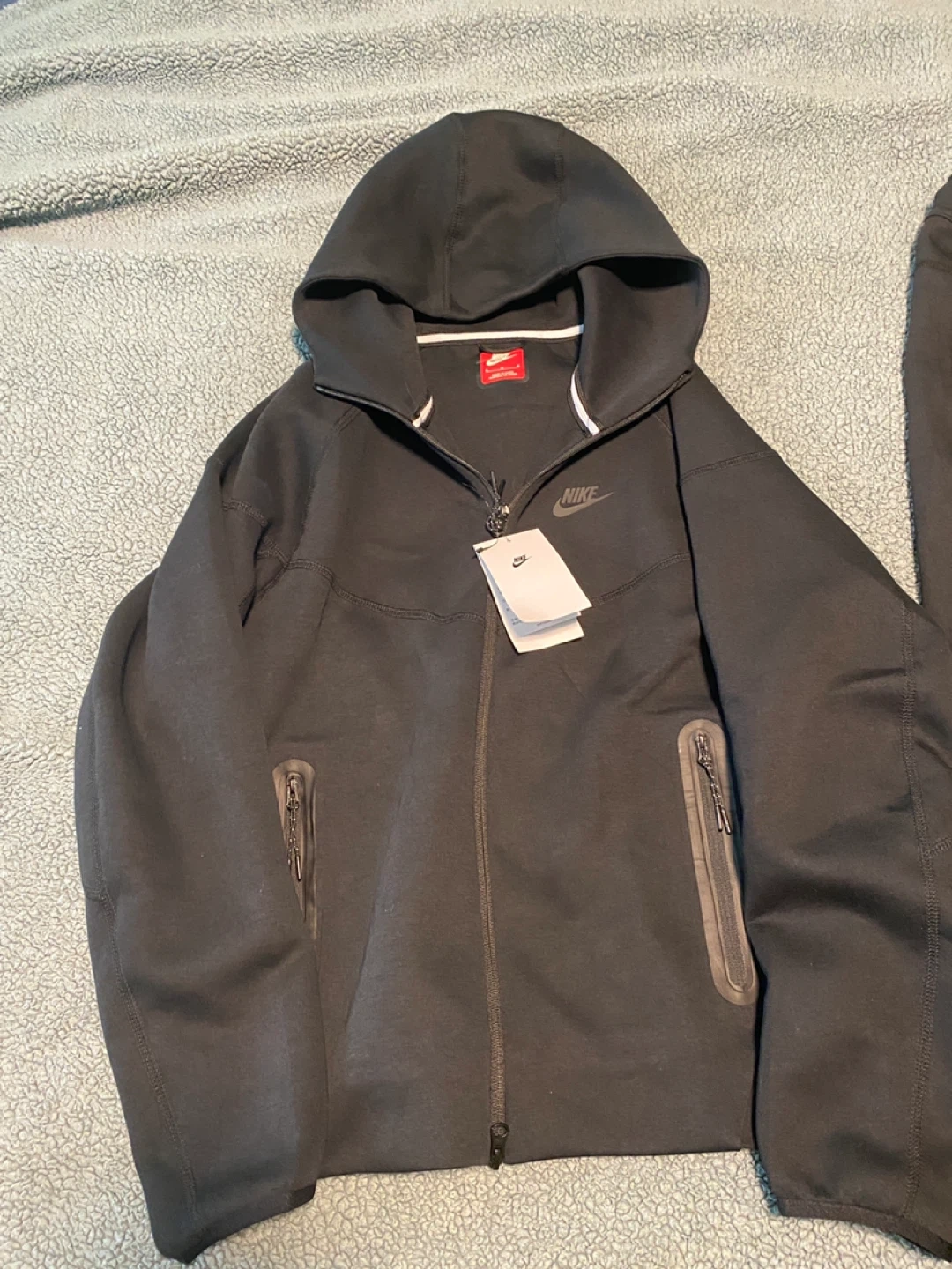 Selling a brand new with tags Nike Tech Fleece tracksuit in black! The set includes both the hoodie and the pants. Great for staying comfortable and stylish.