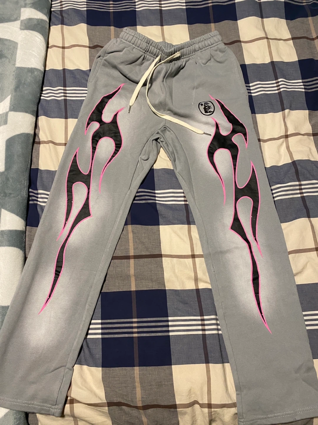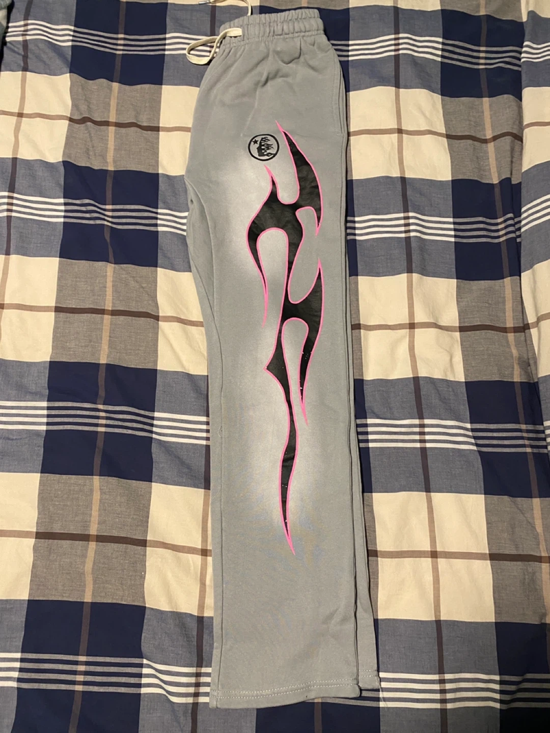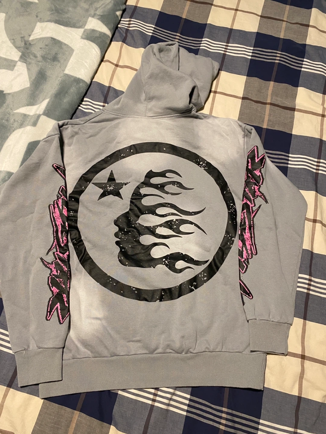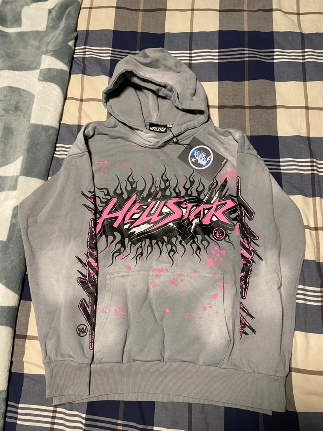 Selling a Hellstar hoodie and sweatpants set! Both are size small and in great condition. The grey colour and unique design make this set a standout piece in any wardrobe. Perfect for casual wear or lounging around the house