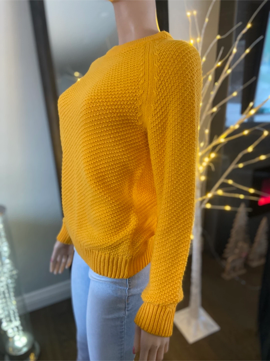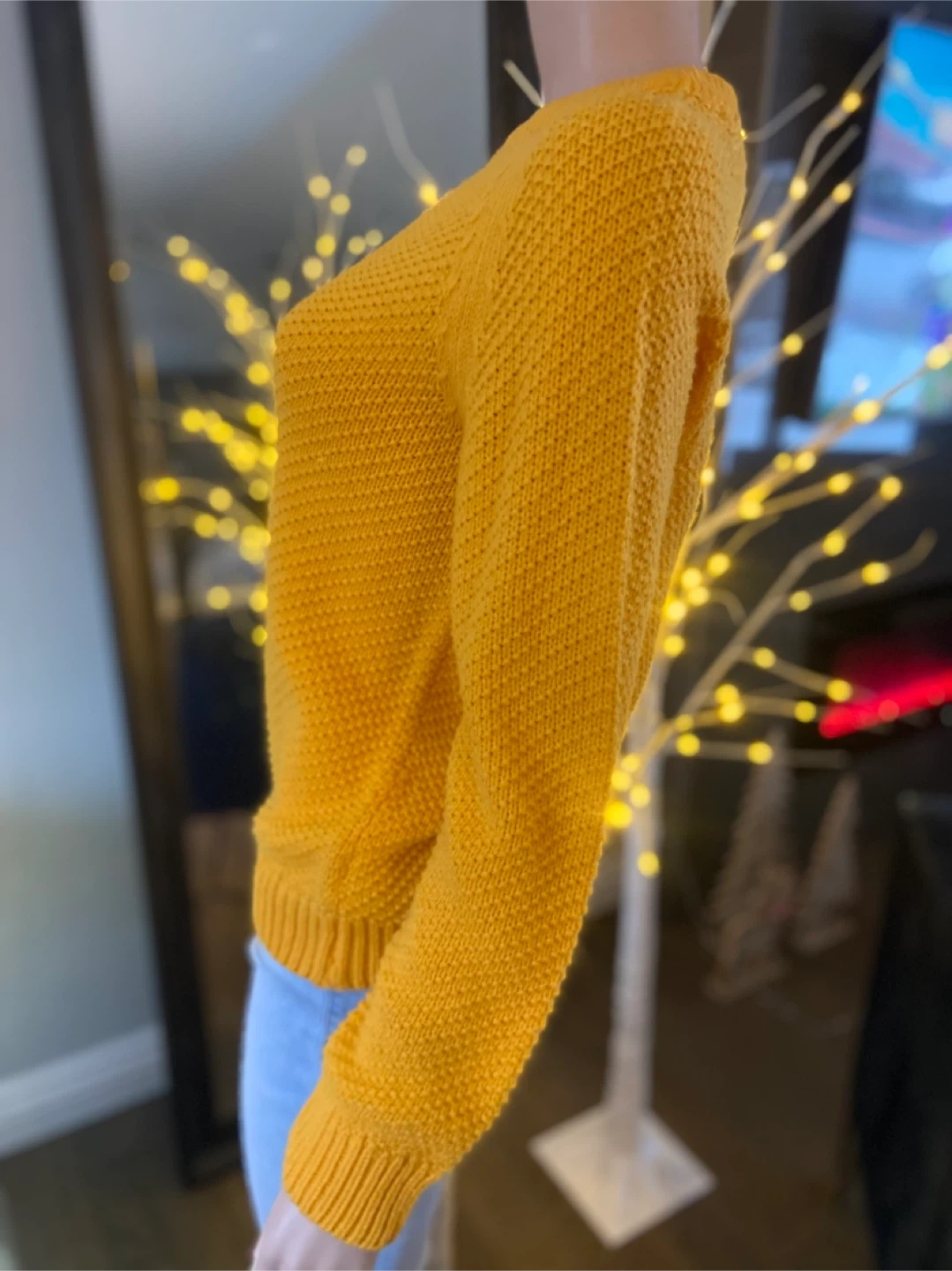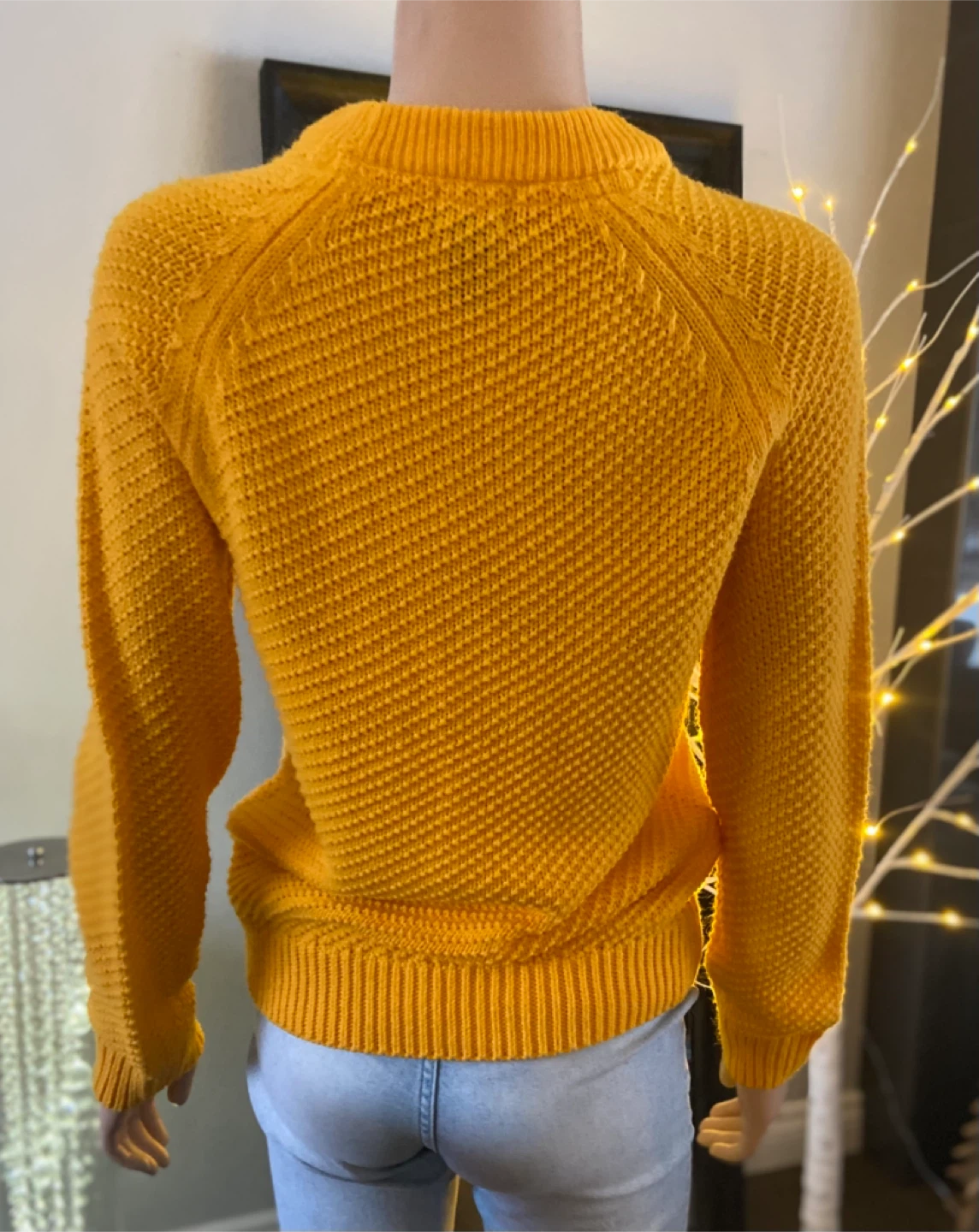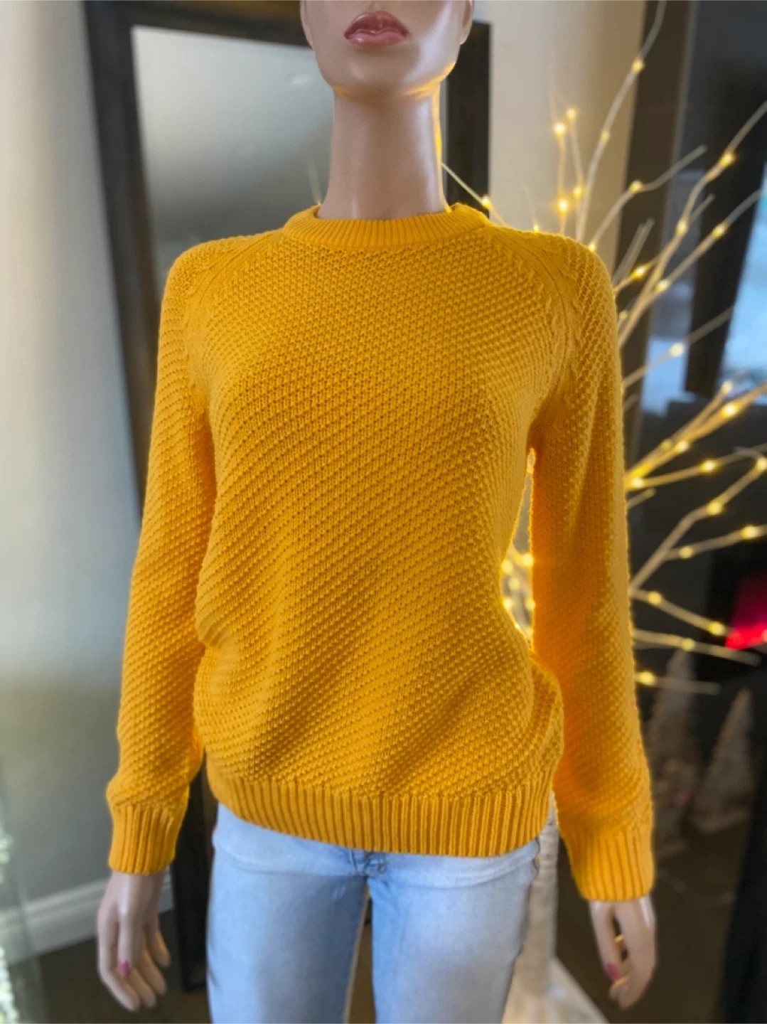 A cozy yellow knit sweater from H&M! It's in excellent condition and from a smk-free home. The textured knit pattern adds a stylish touch, perfect for layering or wearing on its own.
