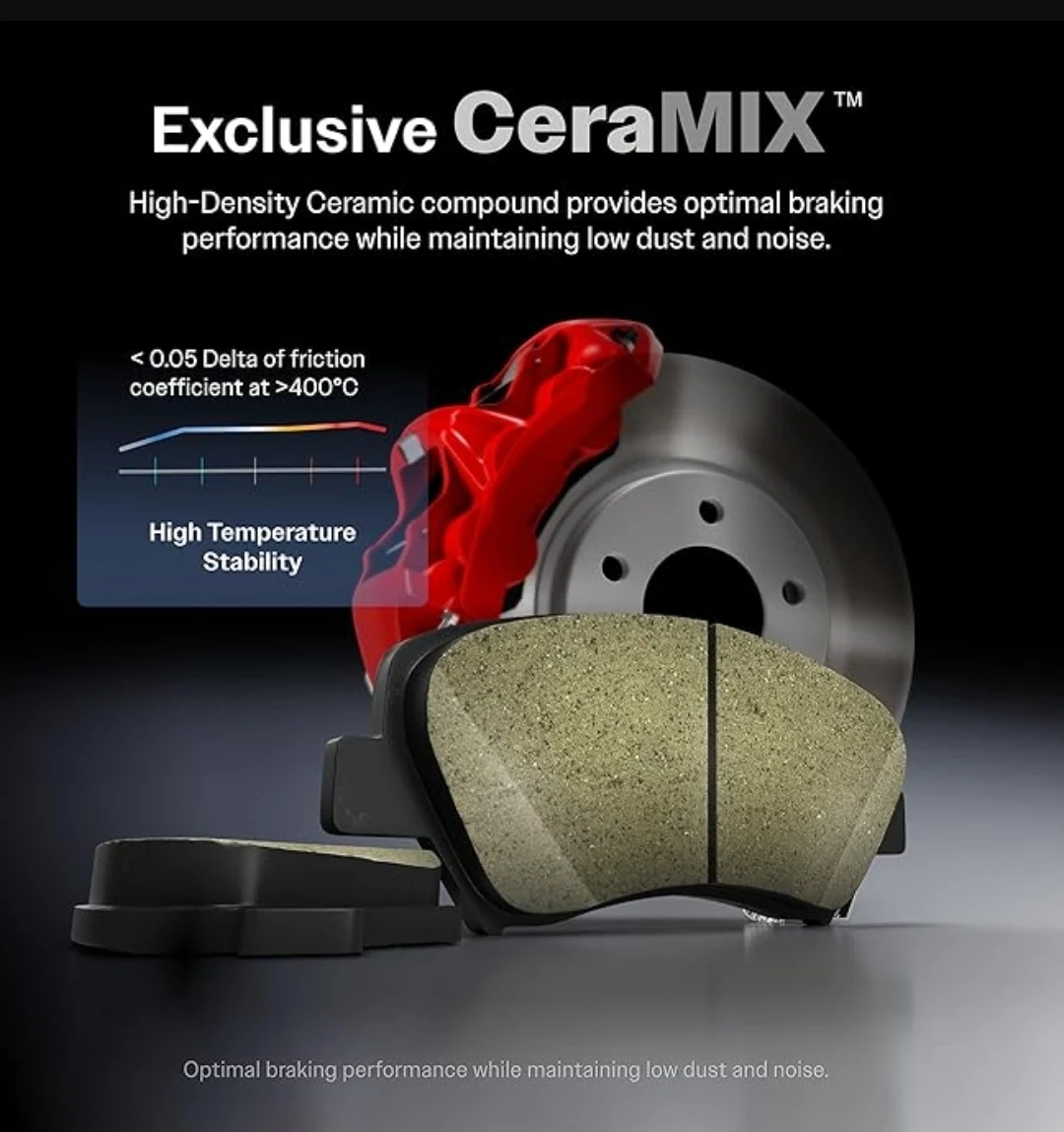 ● Exclusive high-density ceramic formula for optimal braking power and quietness.