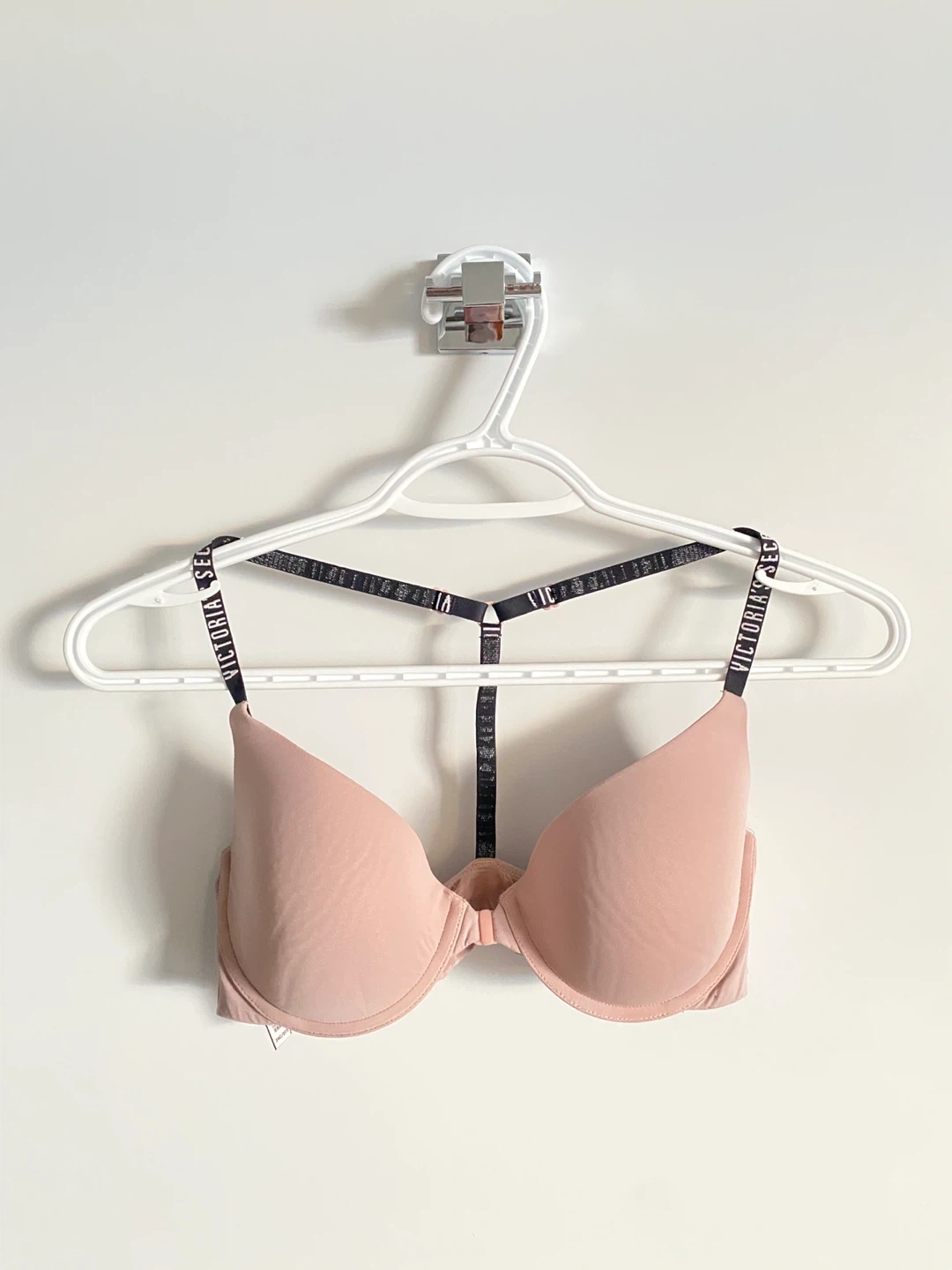 Victoria's Secret bra in size 34C in nude colour that can be easily worn under any piece and colour of clothing. Has super easy front closure!