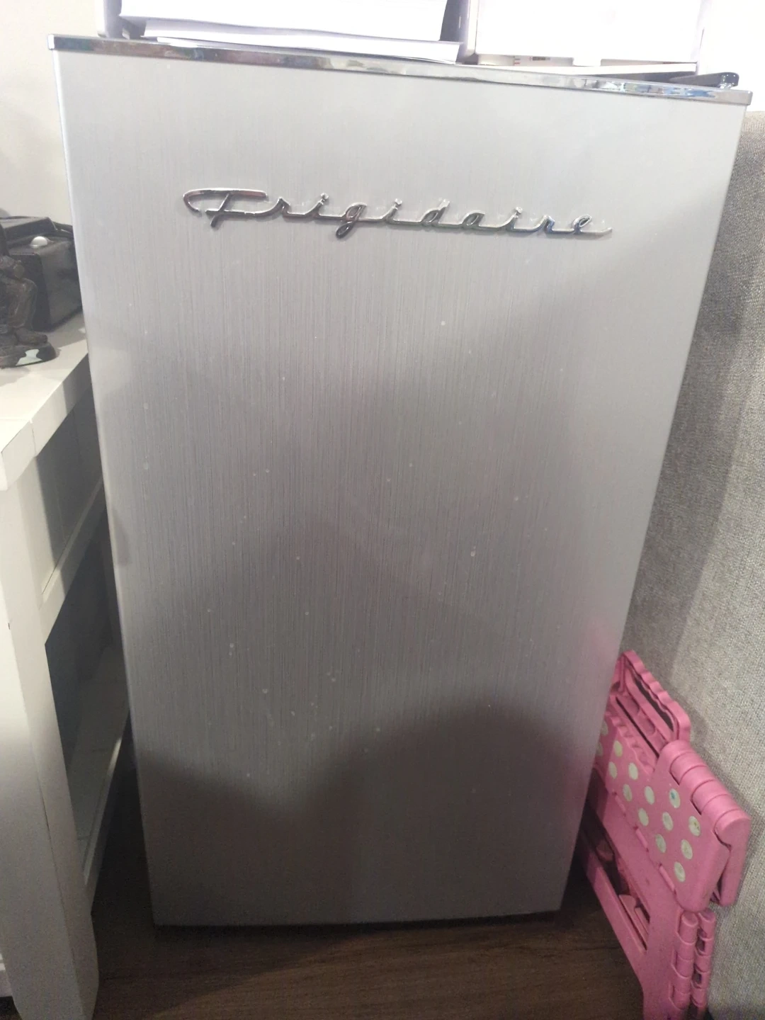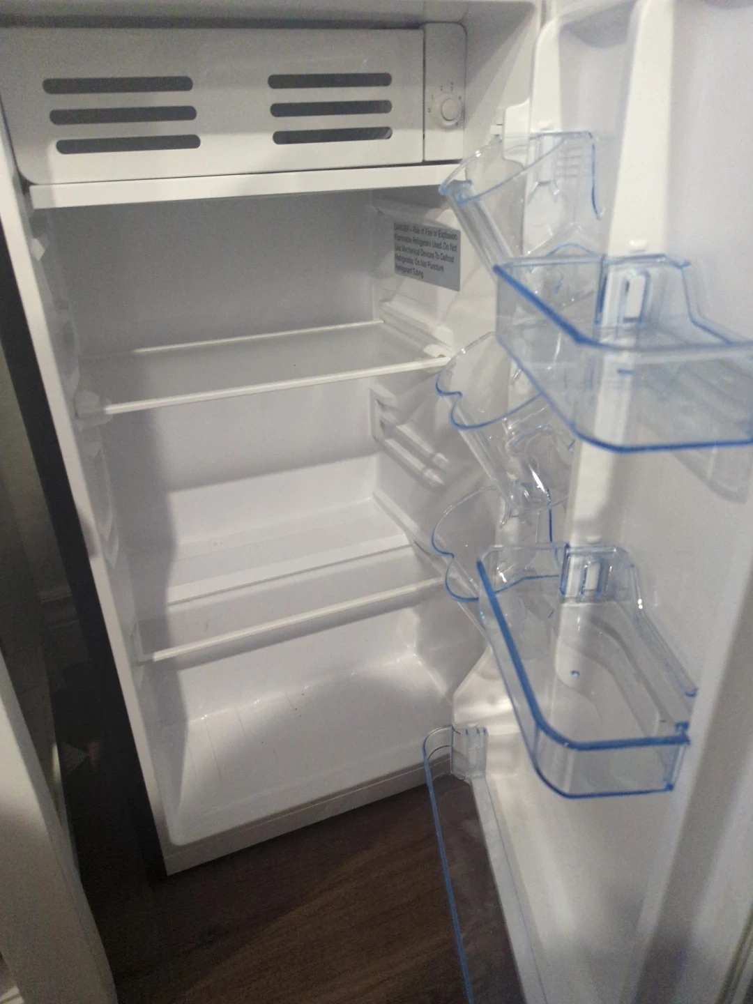 Selling a Frigidaire compact mini fridge. NEVER USED. It's in excellent condition and perfect for a dorm room, office, or small apartment. It has adjustable shelves and door storage for your convenience.
