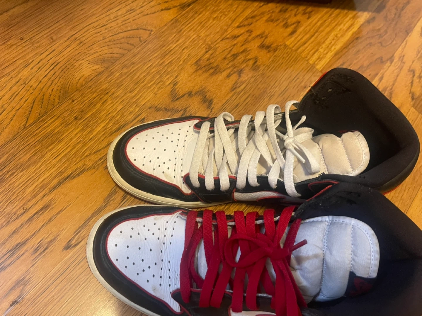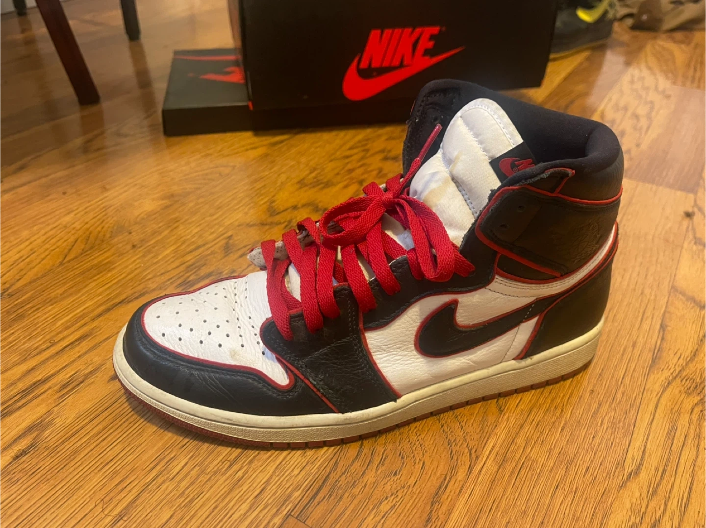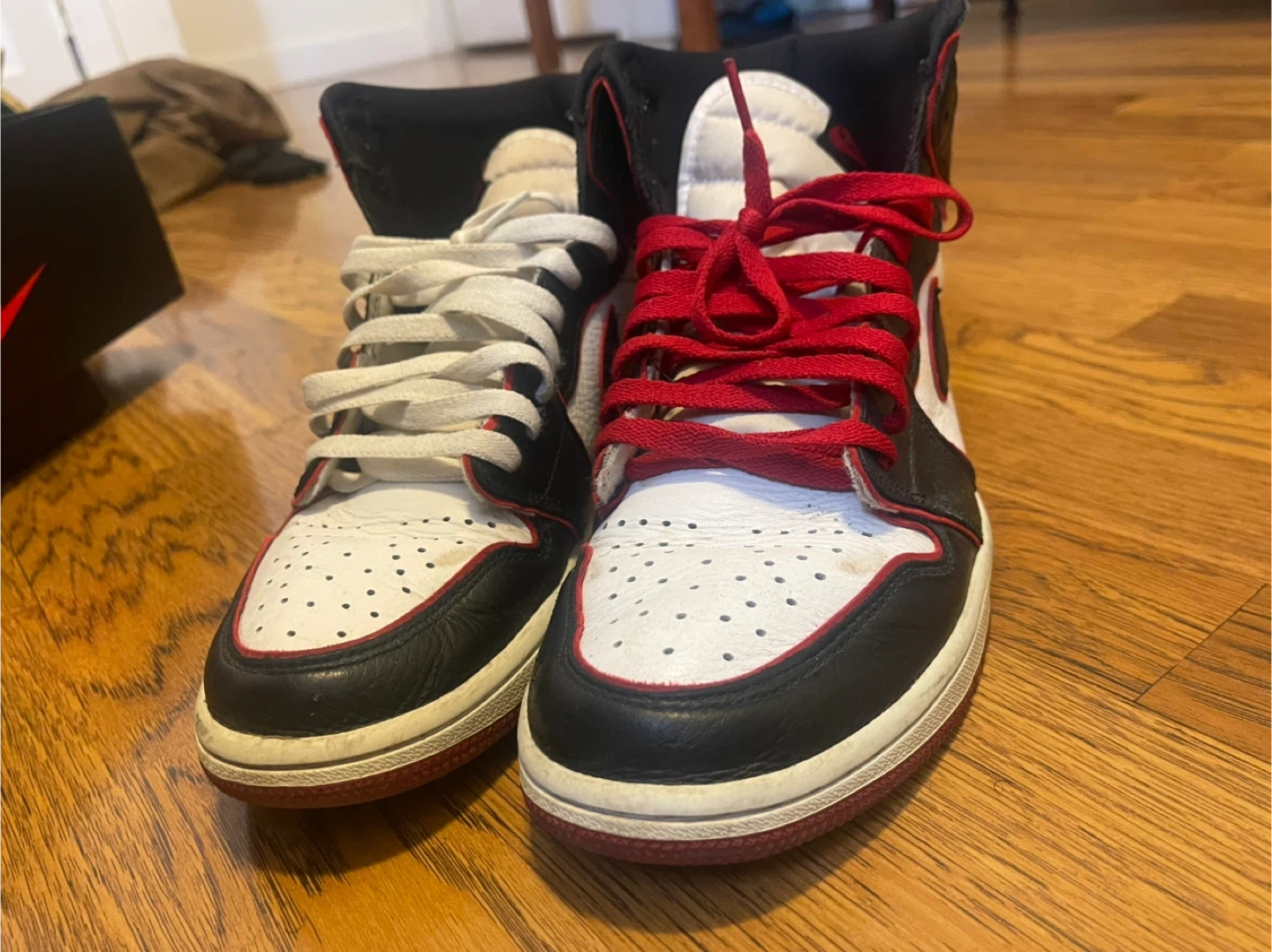 Selling a pair of Nike Air Jordan 1 Retro High sneakers. They come with the original box and an extra set of red laces. These shoes are in good condition and ready for a new home!