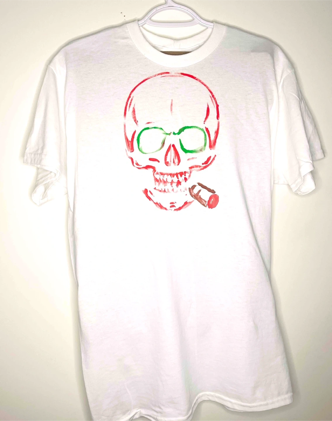 Cool white t-shirt with a unique skull graphic! Perfect for adding a bit of edge to your wardrobe. Check out the pics for the different colour skull designs!