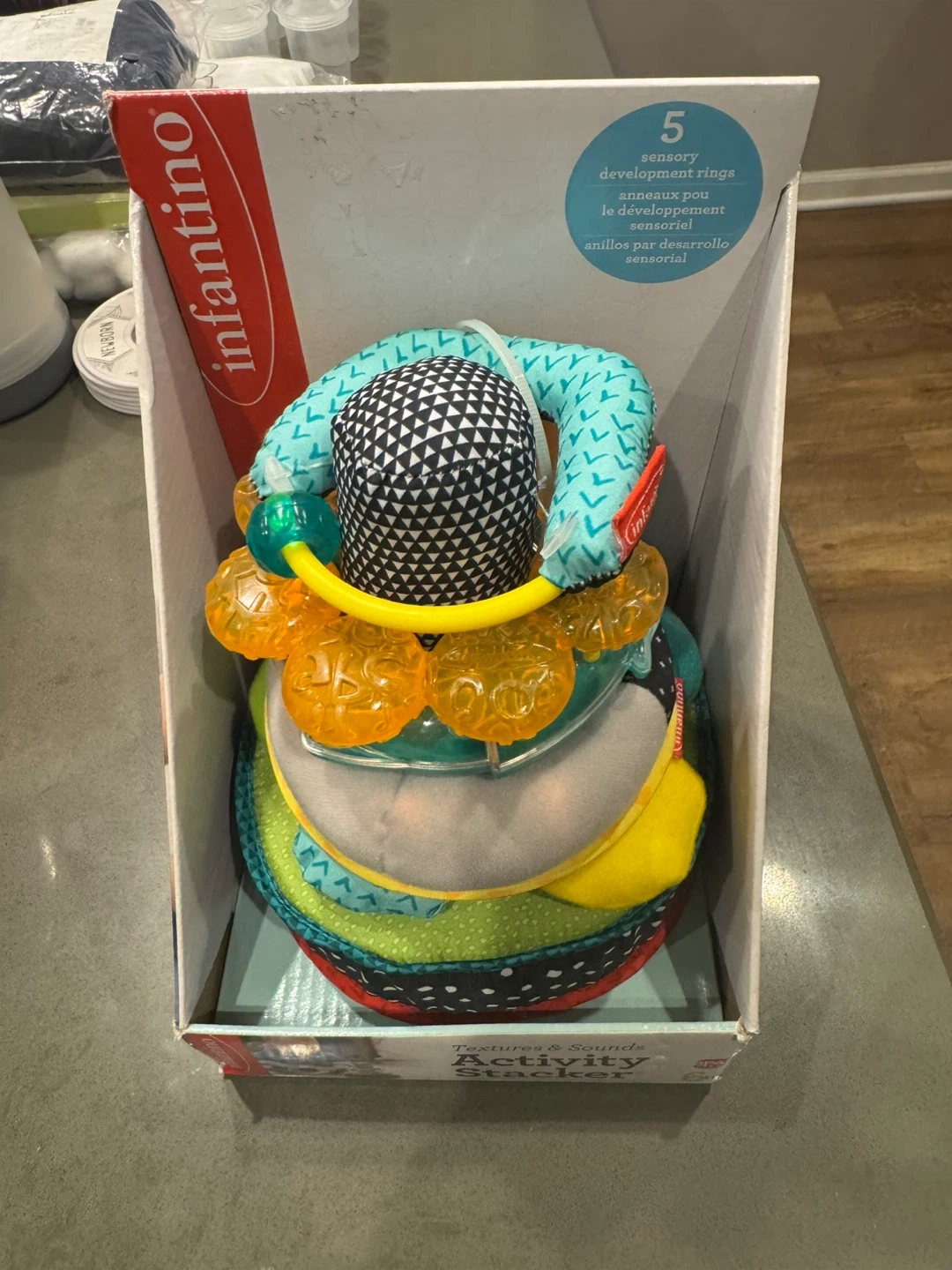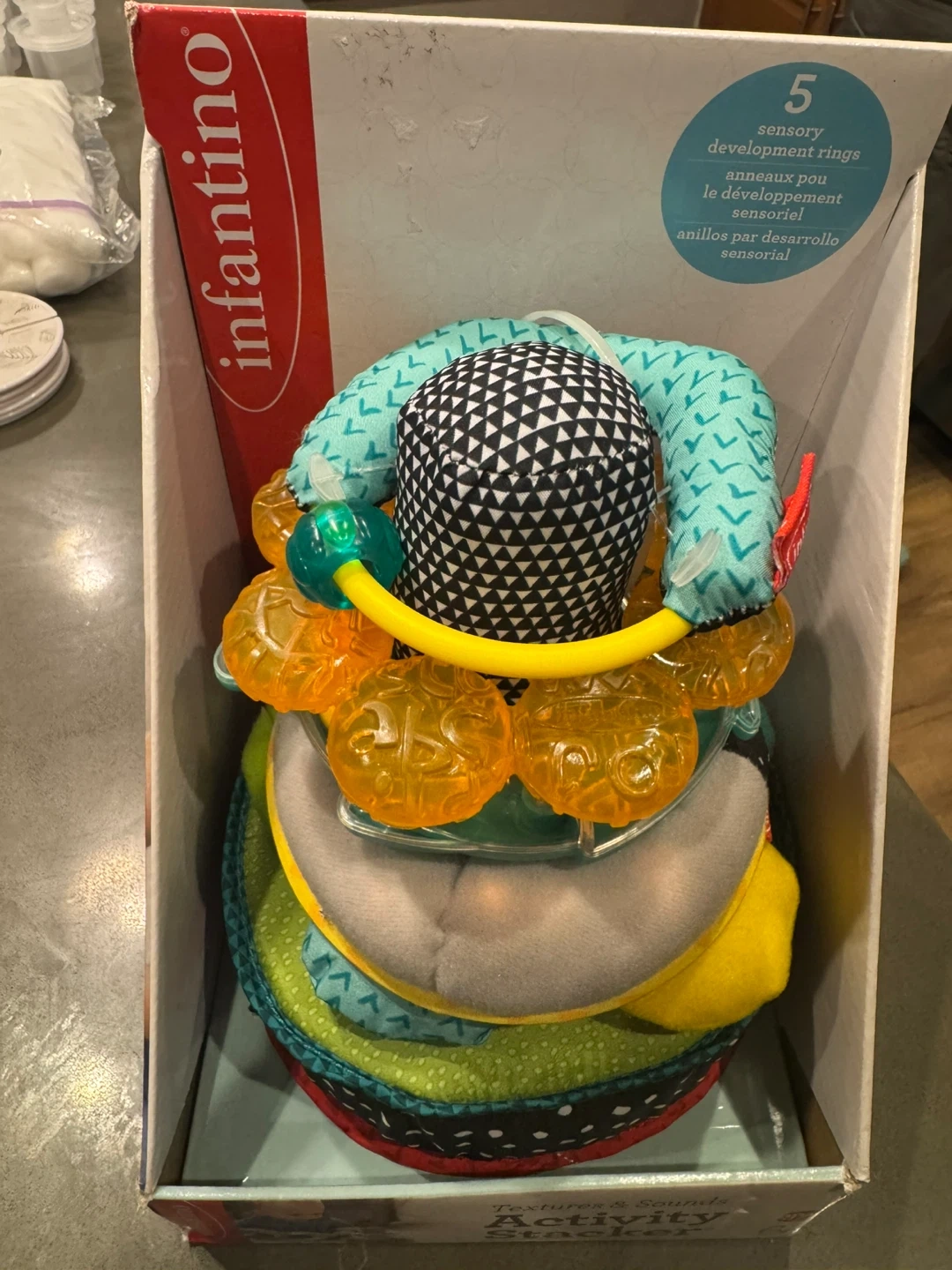 Selling a brand new Infantino Textures & Sounds Activity Stacker, still in its original box! This fun toy features: