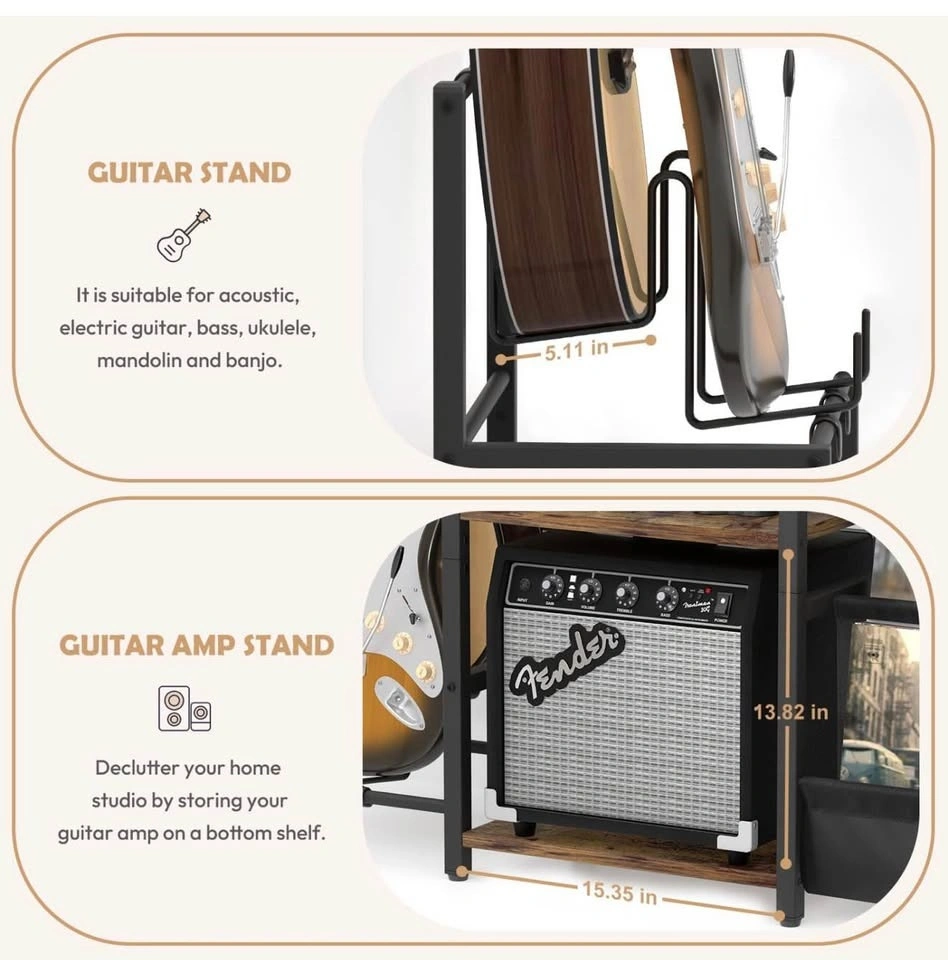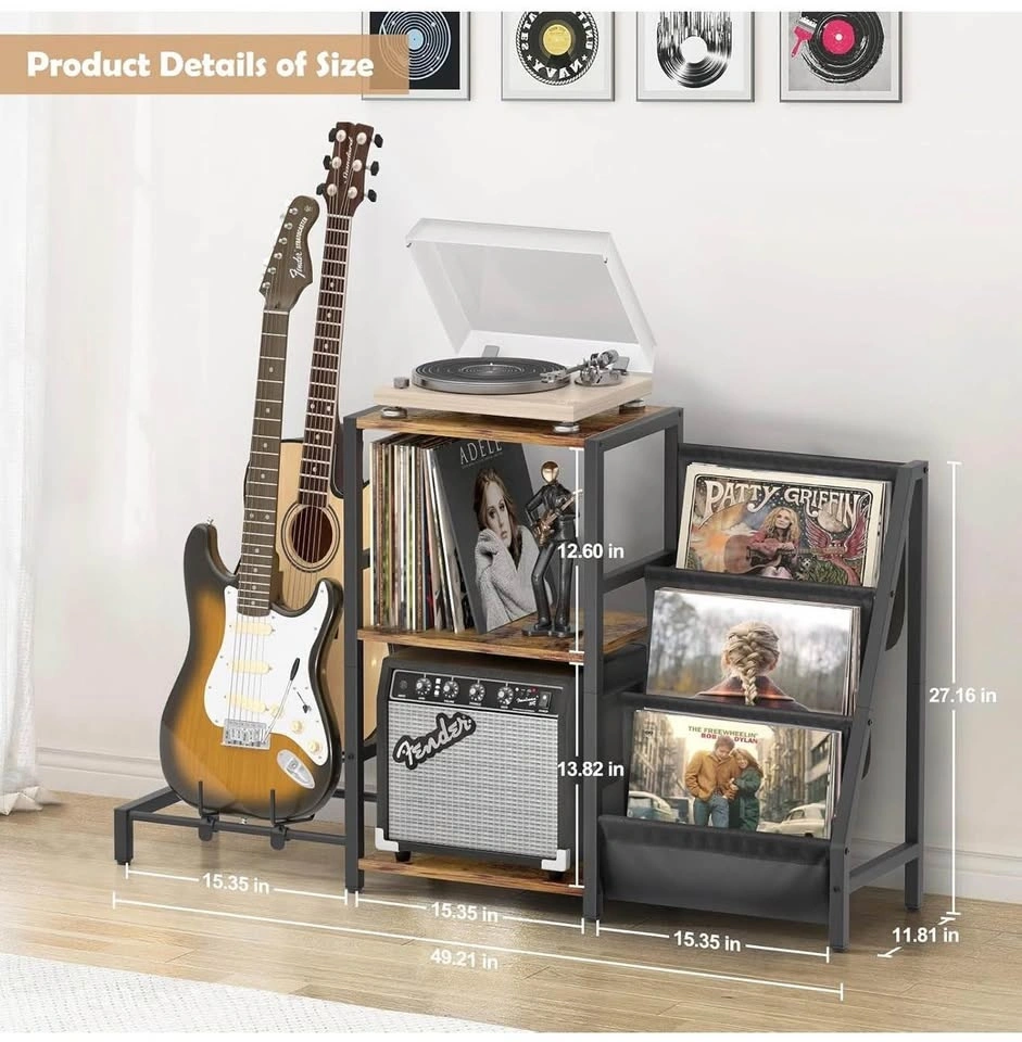 Record Player Stand, Guitar Stand for Acoustic, Electric Guitar, Acoustic, Bass with Guitar Amp Stand, 3-Tier Vinyl Record Storage, Record Player Table for Record Player, Speaker, Amplifier