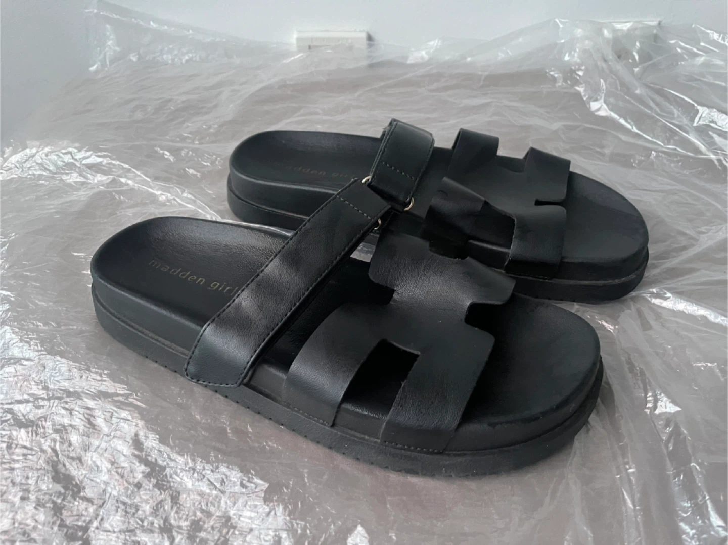 Madden Girl Black Sandals Slides, Size 8, 39