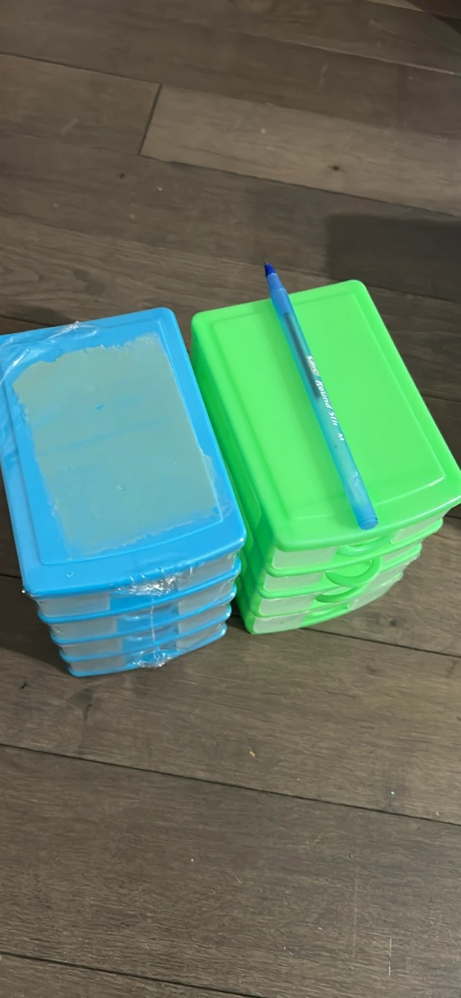 Selling a set of storage drawers! There are two sets of drawers, one in blue and one in green. Perfect for organizing small items around the house or office