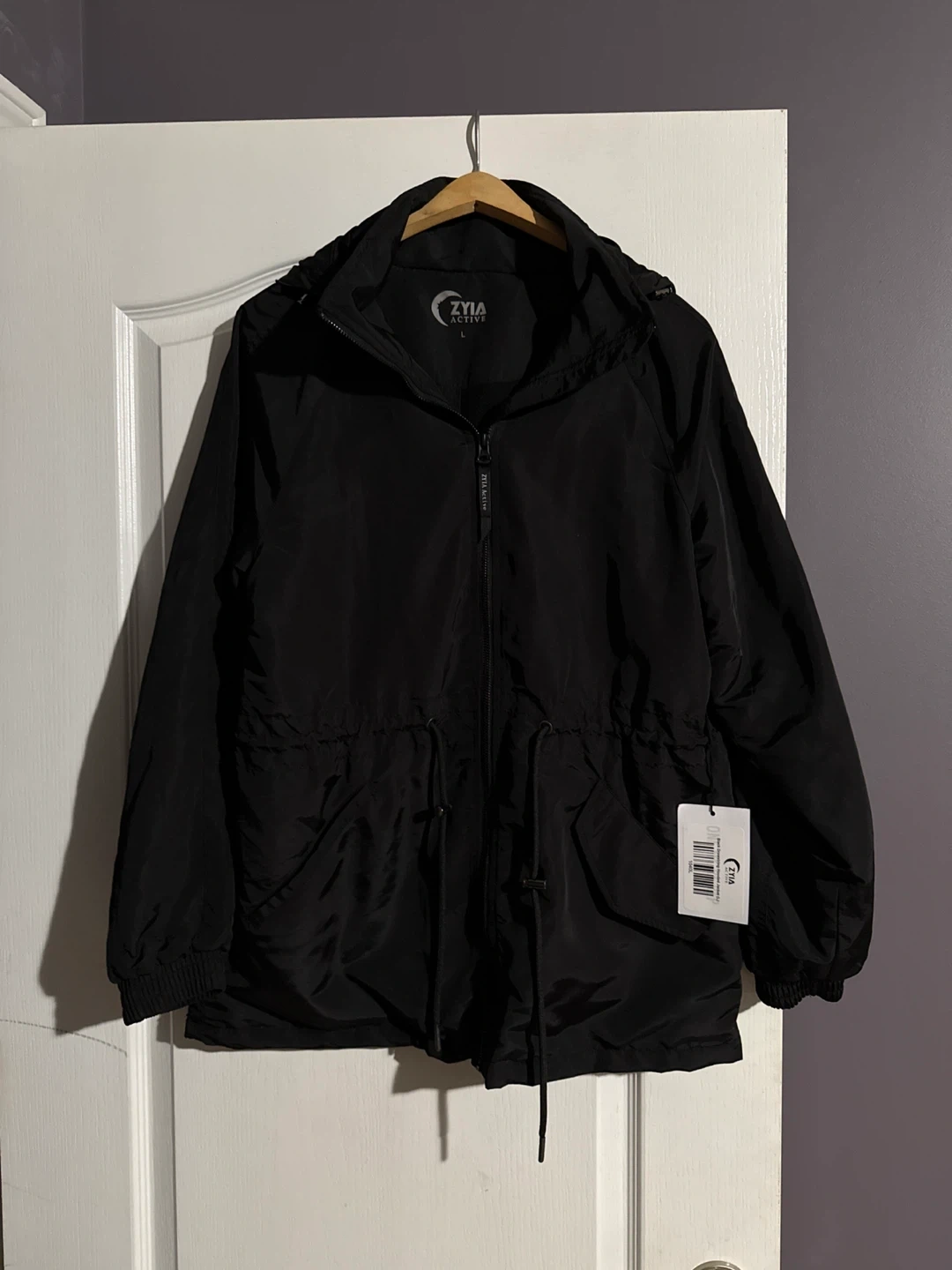 Selling a Zyia Active black drawstring hooded jacket in size large. It's in great condition and ready for a new owner!