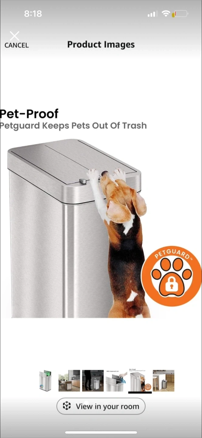 This is an AbsorbX Odor Control System automatic trash can. It is pet-proof and has Petguard technology to keep pets out of the trash.