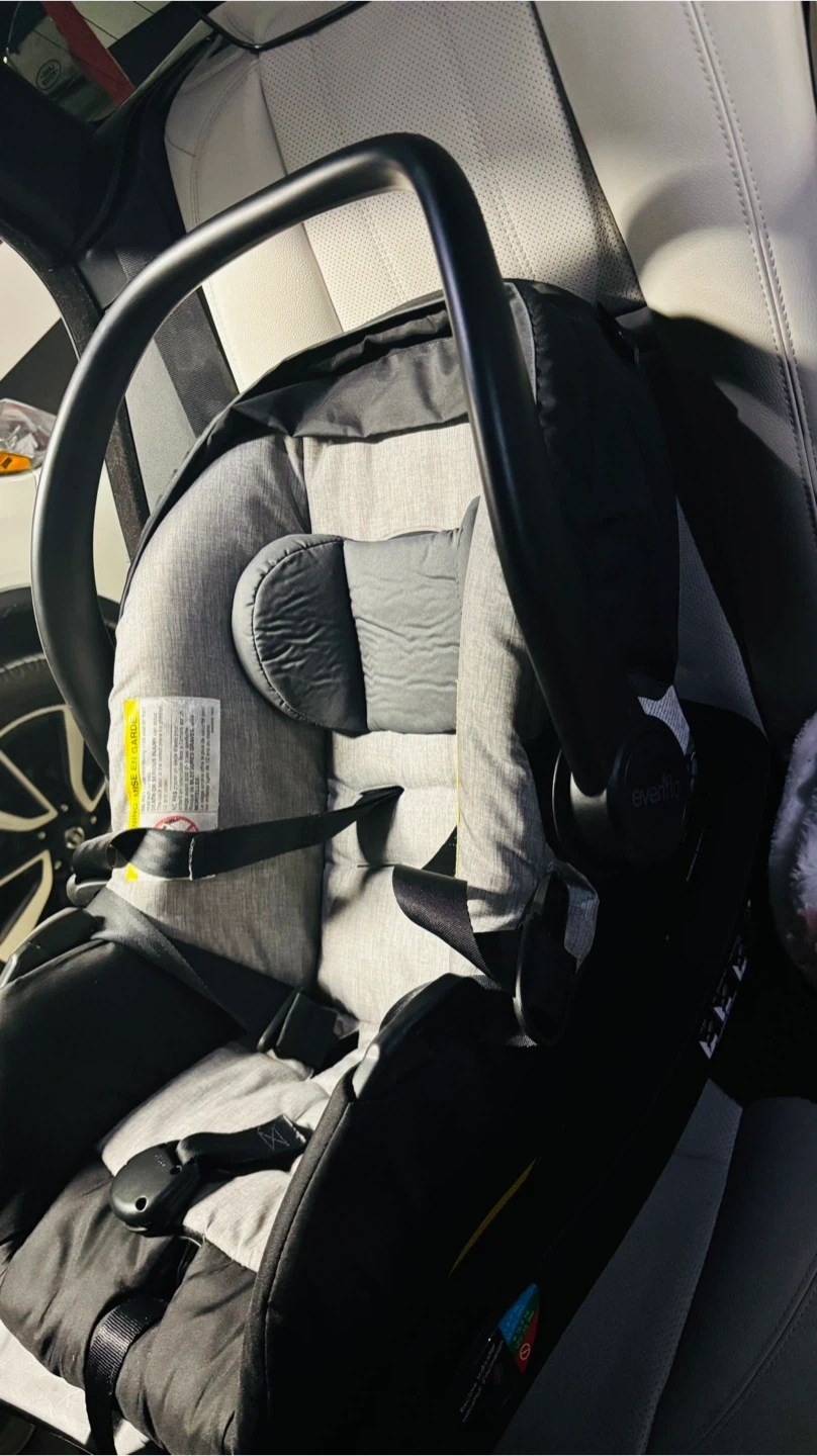 Selling an Evenflo infant car seat in great condition! It's a stylish grey and black colour, perfect for keeping your little one safe and comfy on the go