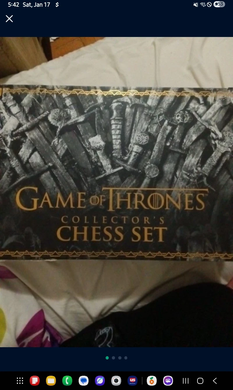 Selling a Game of Thrones Collector's Chess Set. It looks like it's in great condition and ready for a new home! The set includes all the pieces and the board