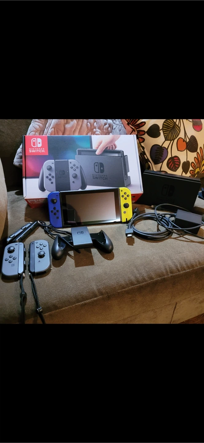 Original Nintendo Switch. Comes with original box, all cords, dock, orzly case for handheld playing, 4 joycons, and carrying case.