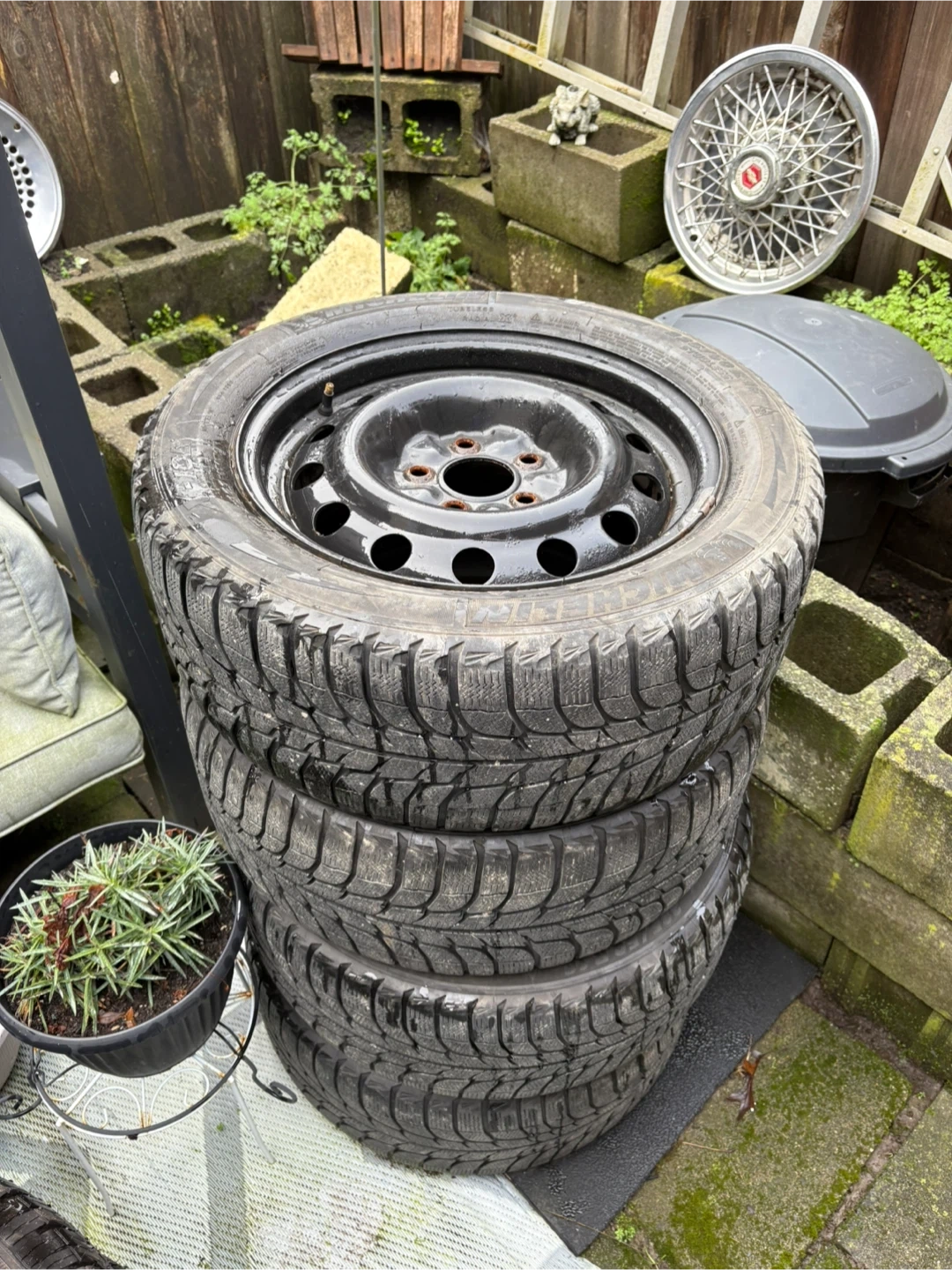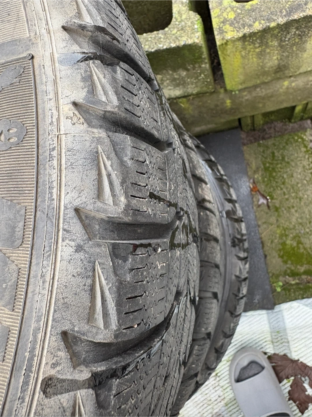 size 225/50/R16. They have some life left. A season or two at least. Ready to keep you safe on the icy roads.