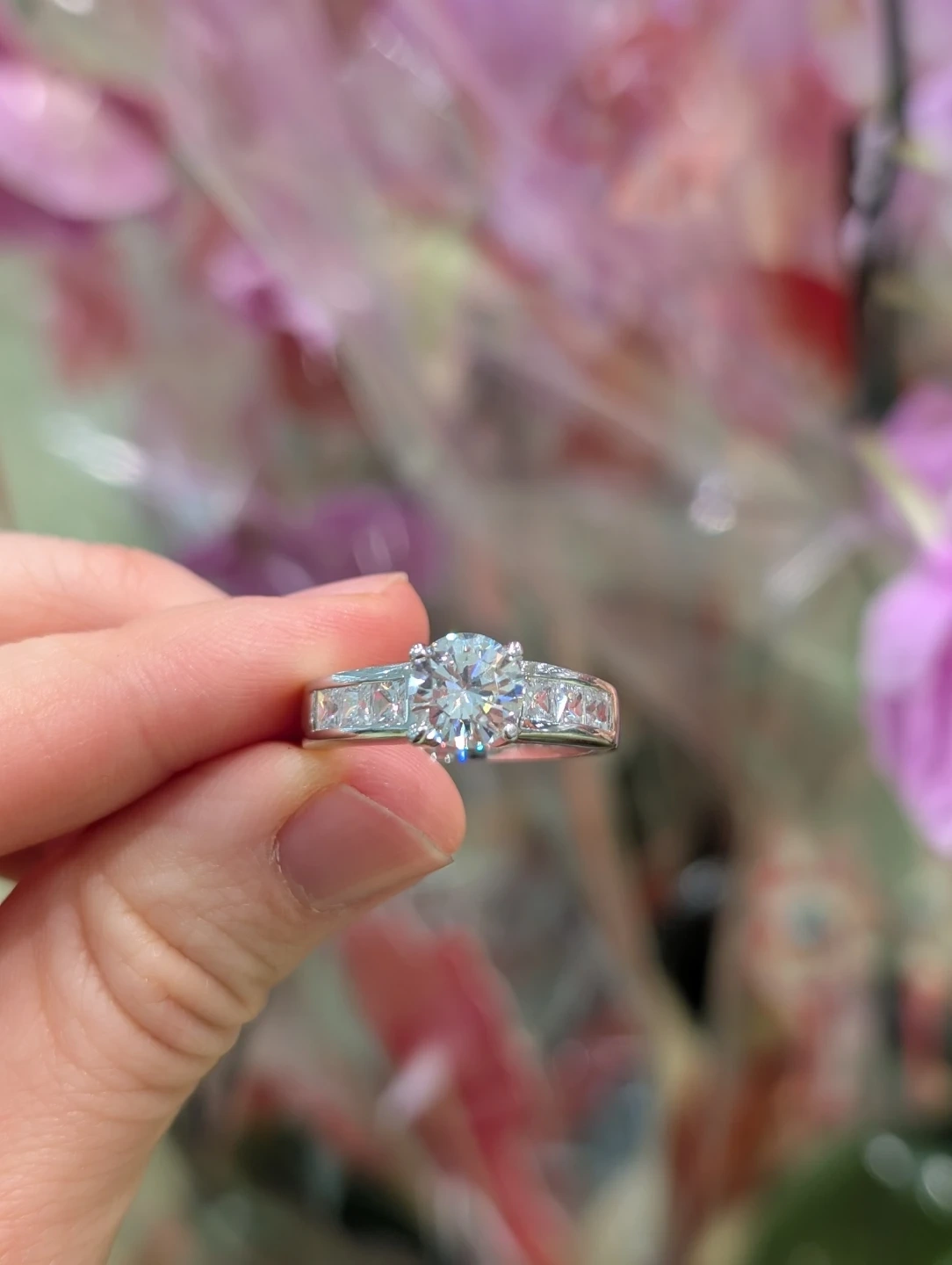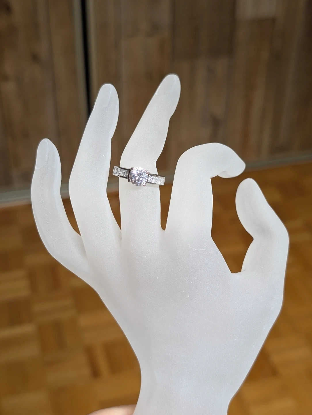 Diamond substitute, almost as shiny as diamond. Never worn before. Great for an engagement ring or daily jewelry! Feel free to take a look at it before deciding if you want it or not.