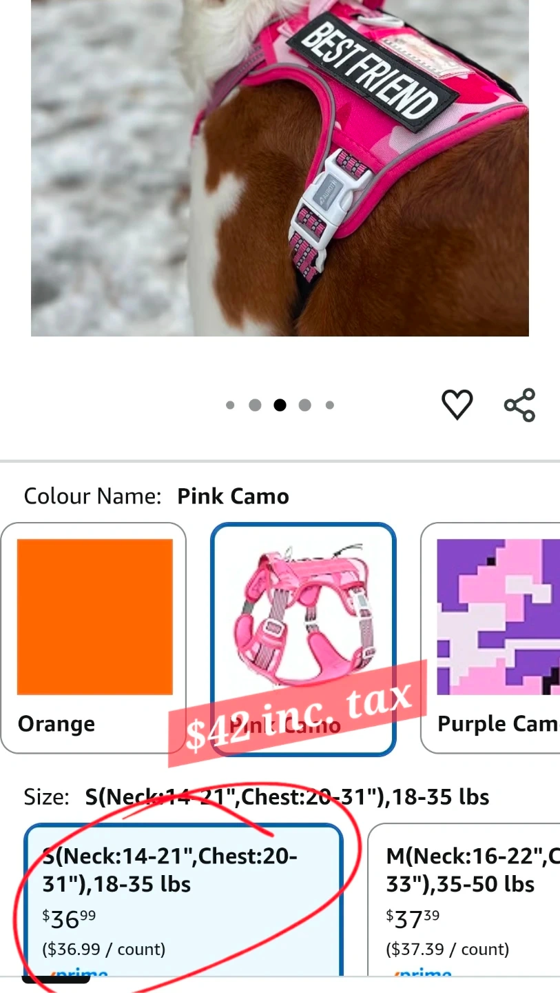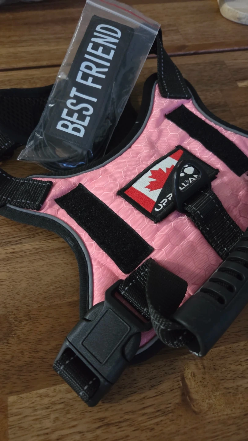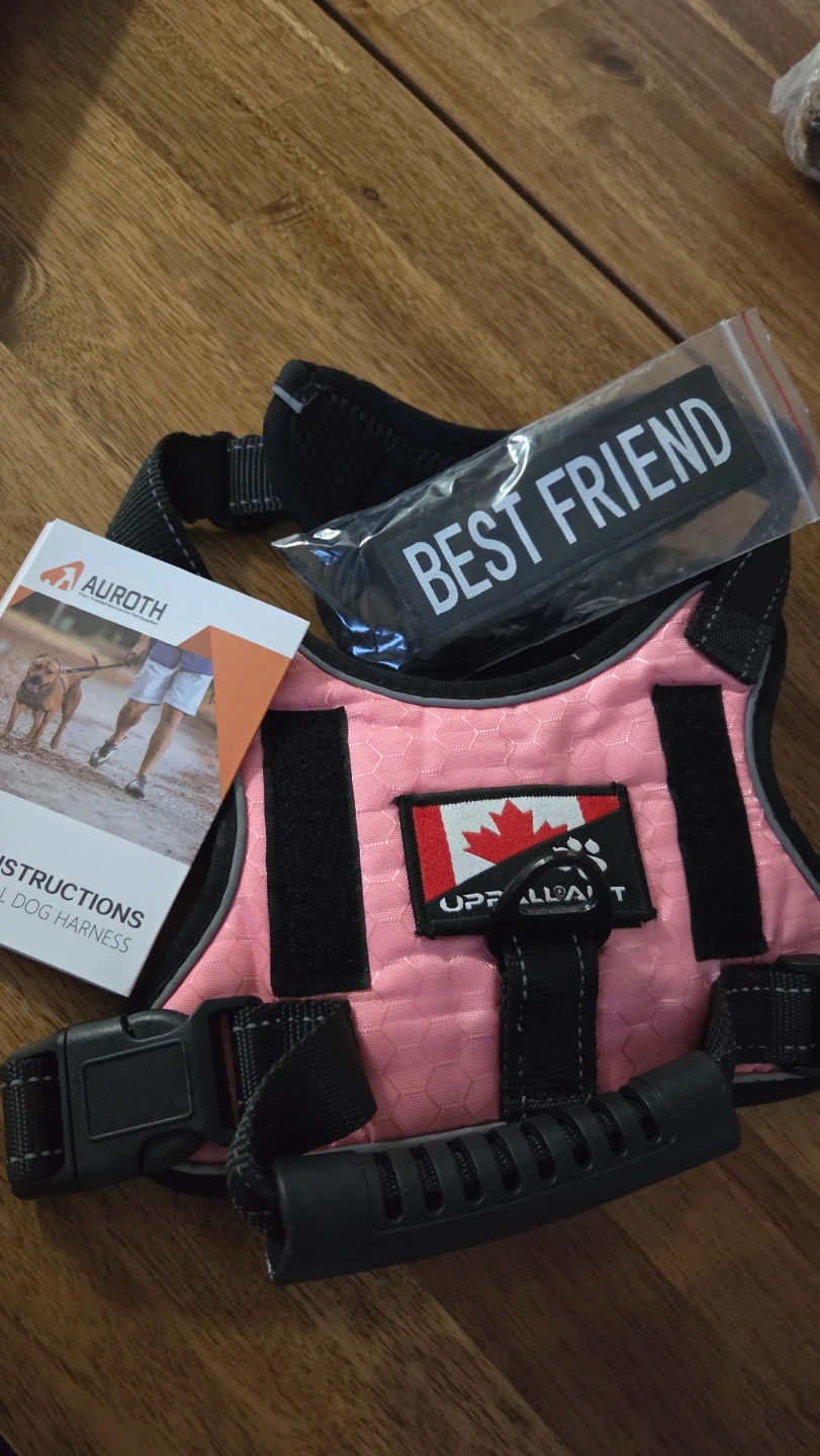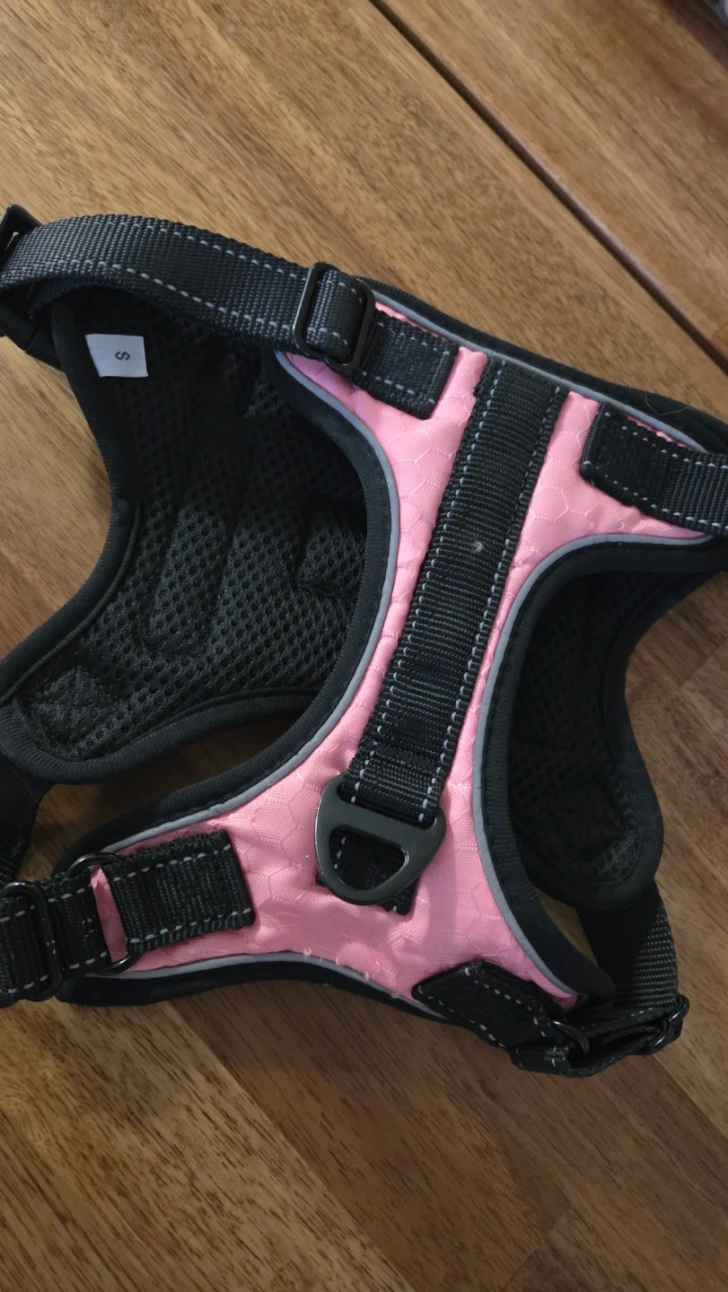 This is new dog harness/vest, just tried on but don't fit our dog. We had it as extra, but won't need it anymore. Easy to put and adjust. Size is S (18-35 lbs dog). Original price is $42, so save $$ and please don't ask for a lower price.