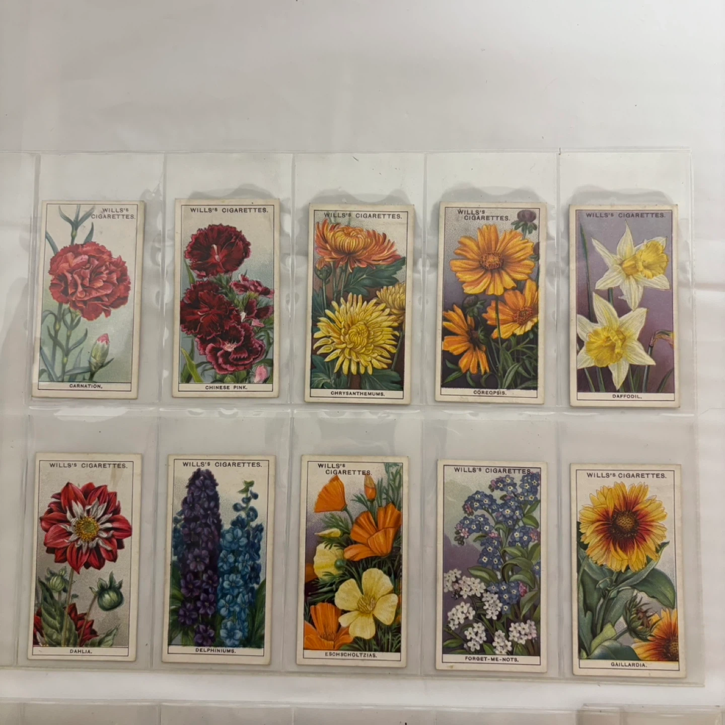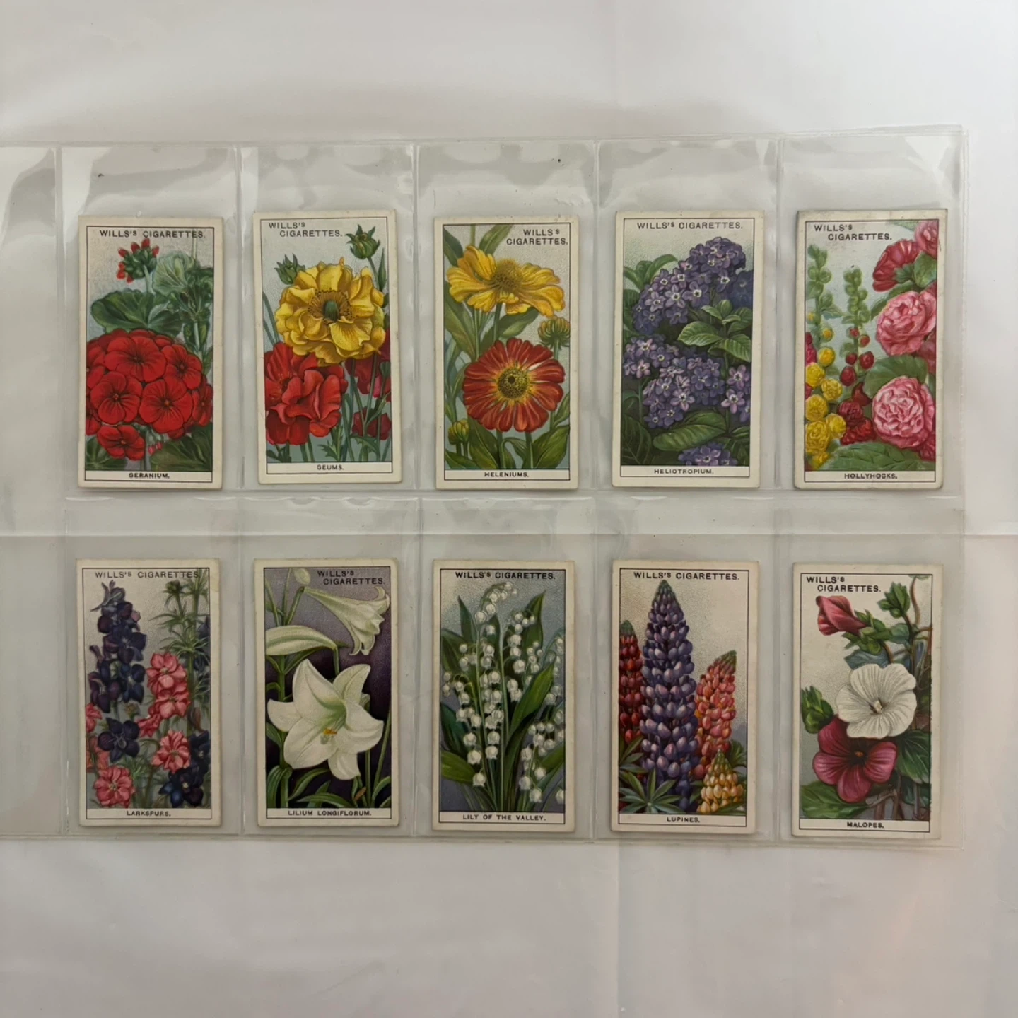 Here's a collection of vintage Wills's Cigarettes flower cards. Each card features a different flower. A lovely set for collectors!