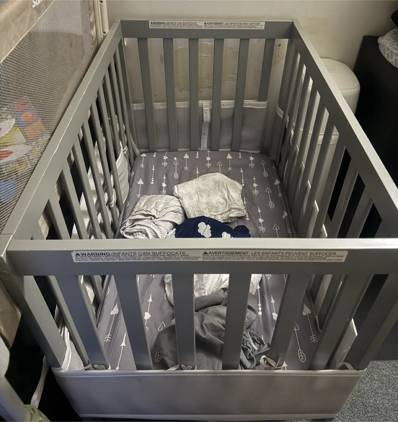Selling a baby mini crib that’s in good condition, but minor scratches off the paint as pictures shown.