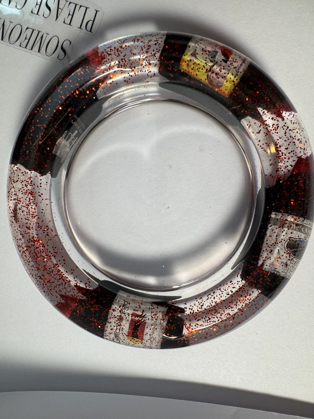 Unique resin ashtray featuring a fun design with miniature champagne bottles and red glitter! It's a statement piece that's sure to catch the eye