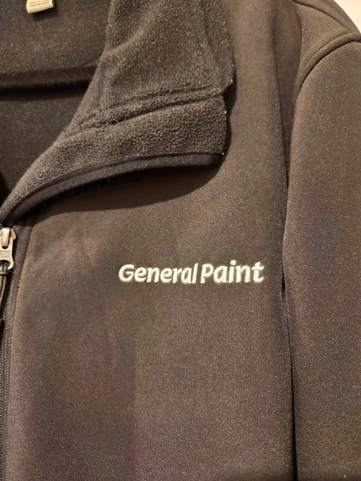 This is a warm fleece lined high quality jacket with water repellent exterior and embroidered general paint stitching.