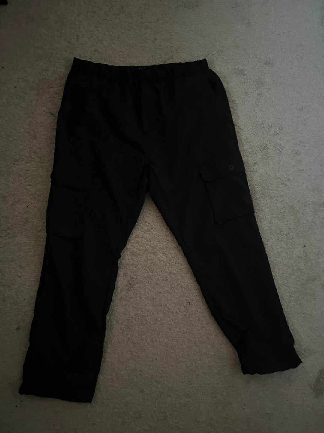 Selling a blue note pair of black cargo pants. They are in good condition with some signs of wear, they only have a dirt spot.