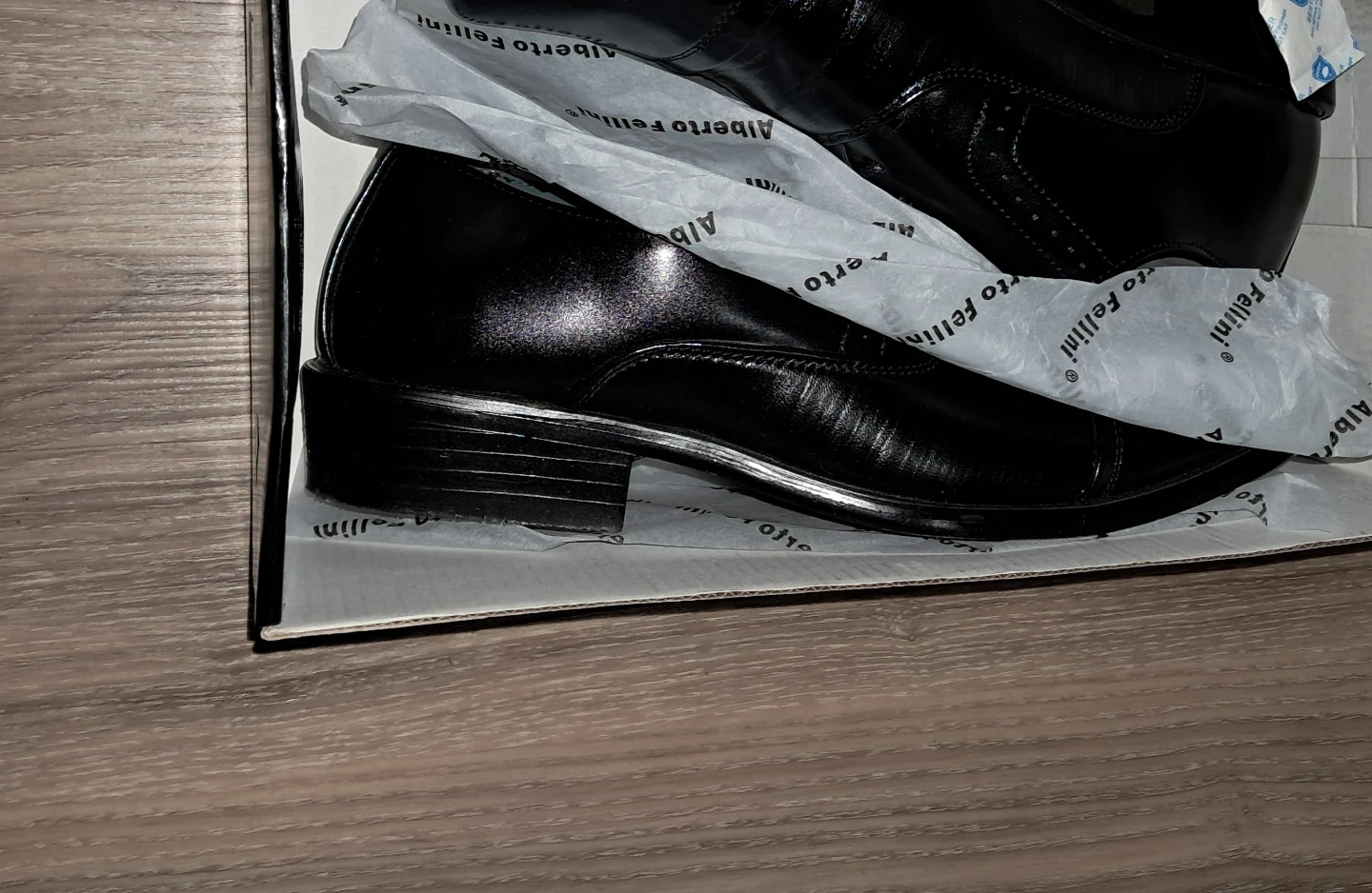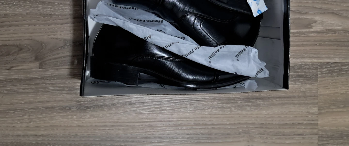 Selling a pair of Alberto Fellini dress shoes in black! They come with the original box.
