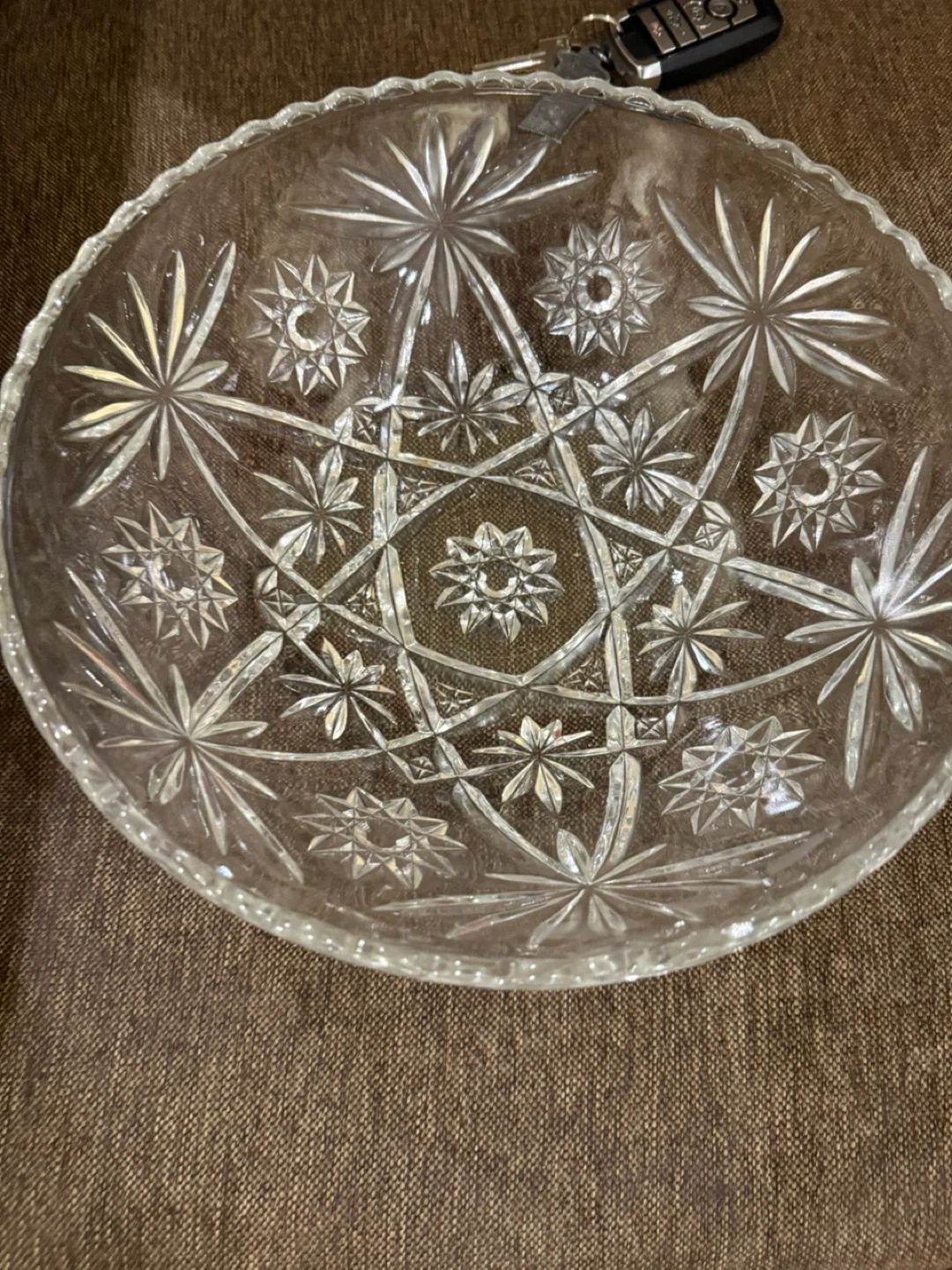 Selling a set of crystal serving dishes. They are perfect for serving appetizers or desserts at your next gathering! They have a beautiful design and are in great condition