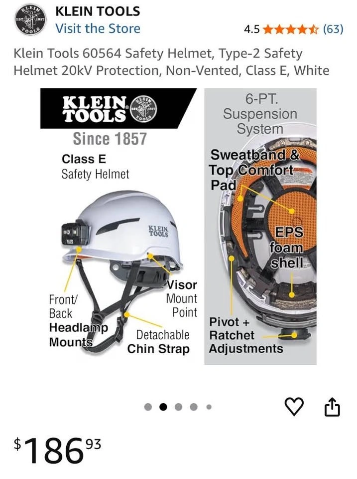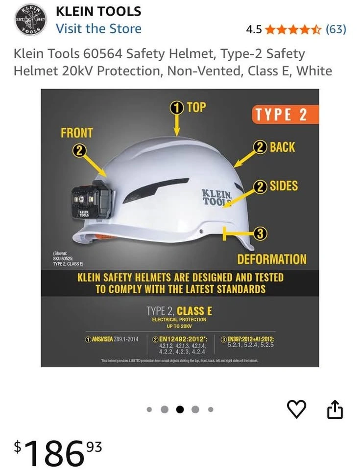 Klein Tools Safety Helmet, Type-2 20kV, Class E, White