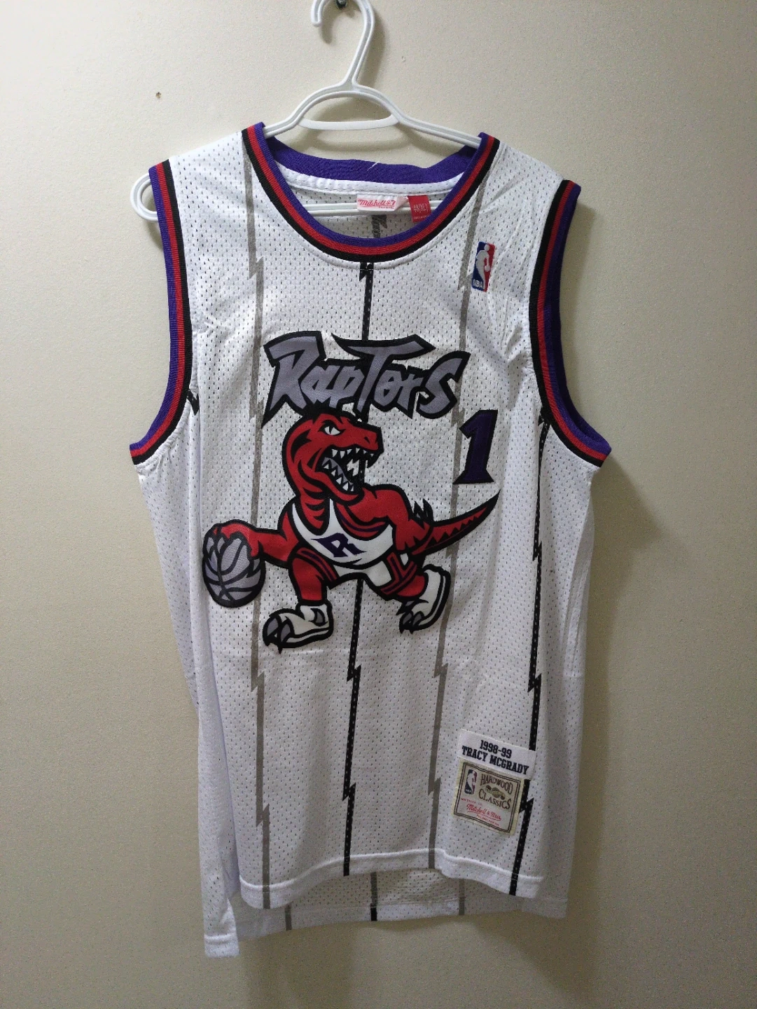 Selling a Mitchell & Ness Tracy McGrady Raptors jersey in size XL. It features the classic Raptors logo and McGrady's name and number on the back. Great for any basketball fan or collector!