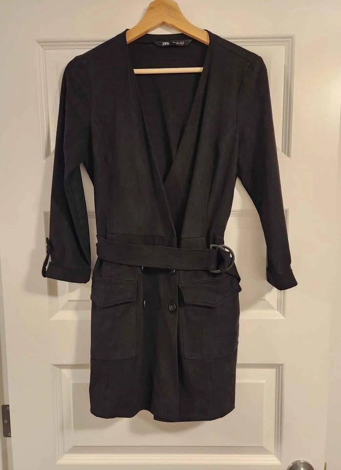 ZARA Black Suede-Style Dress / Jumpsuit – Size Large