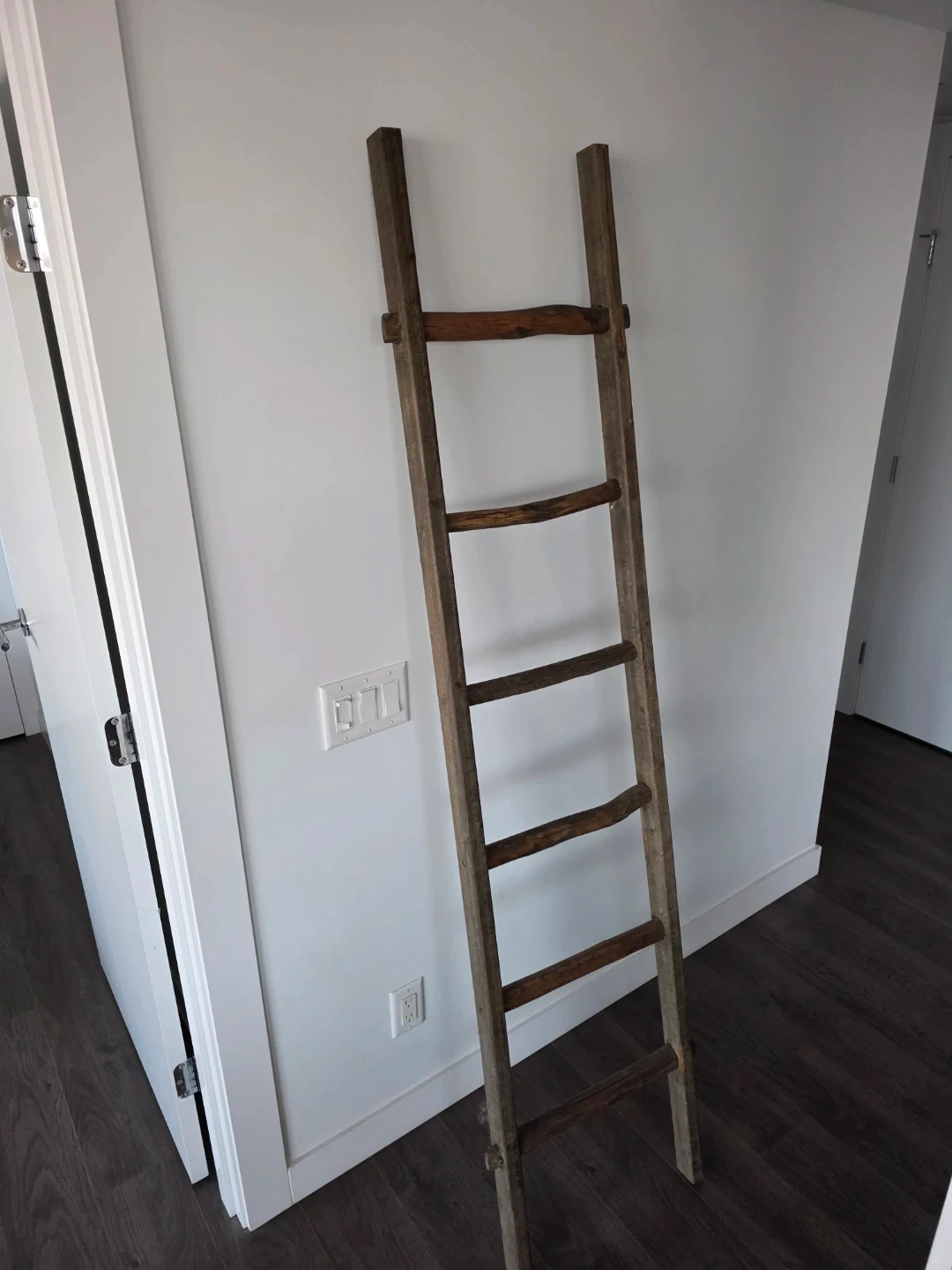 Here's a rustic wooden ladder, perfect for adding a touch of vintage charm to your home decor! It's in good condition and ready to be styled in your living space