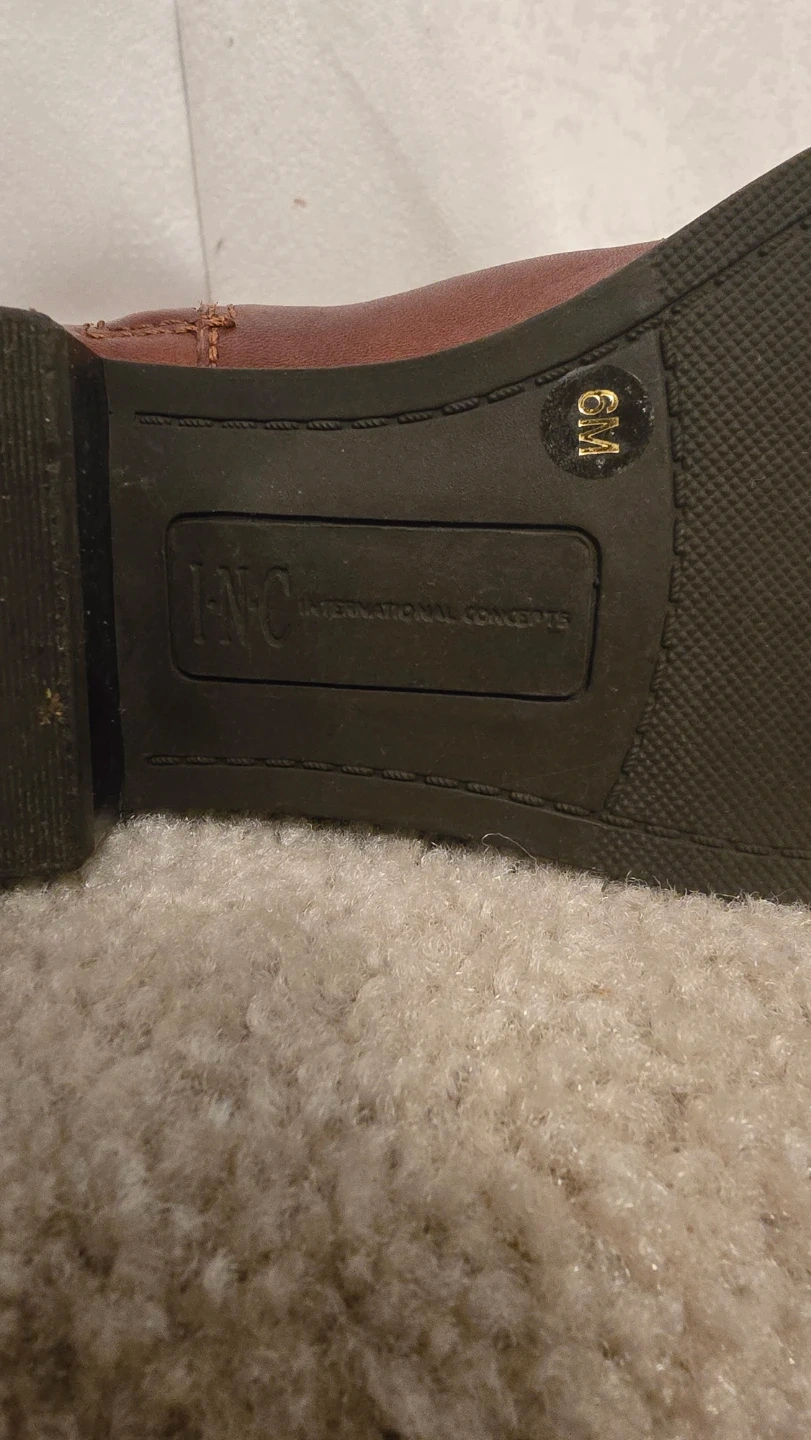 Selling a pair of INC International Concepts riding boots in a lovely brown leather. They are a women's size 6M. These boots have a classic look and are perfect for fall!