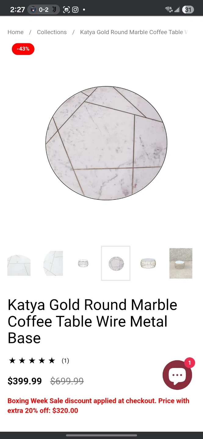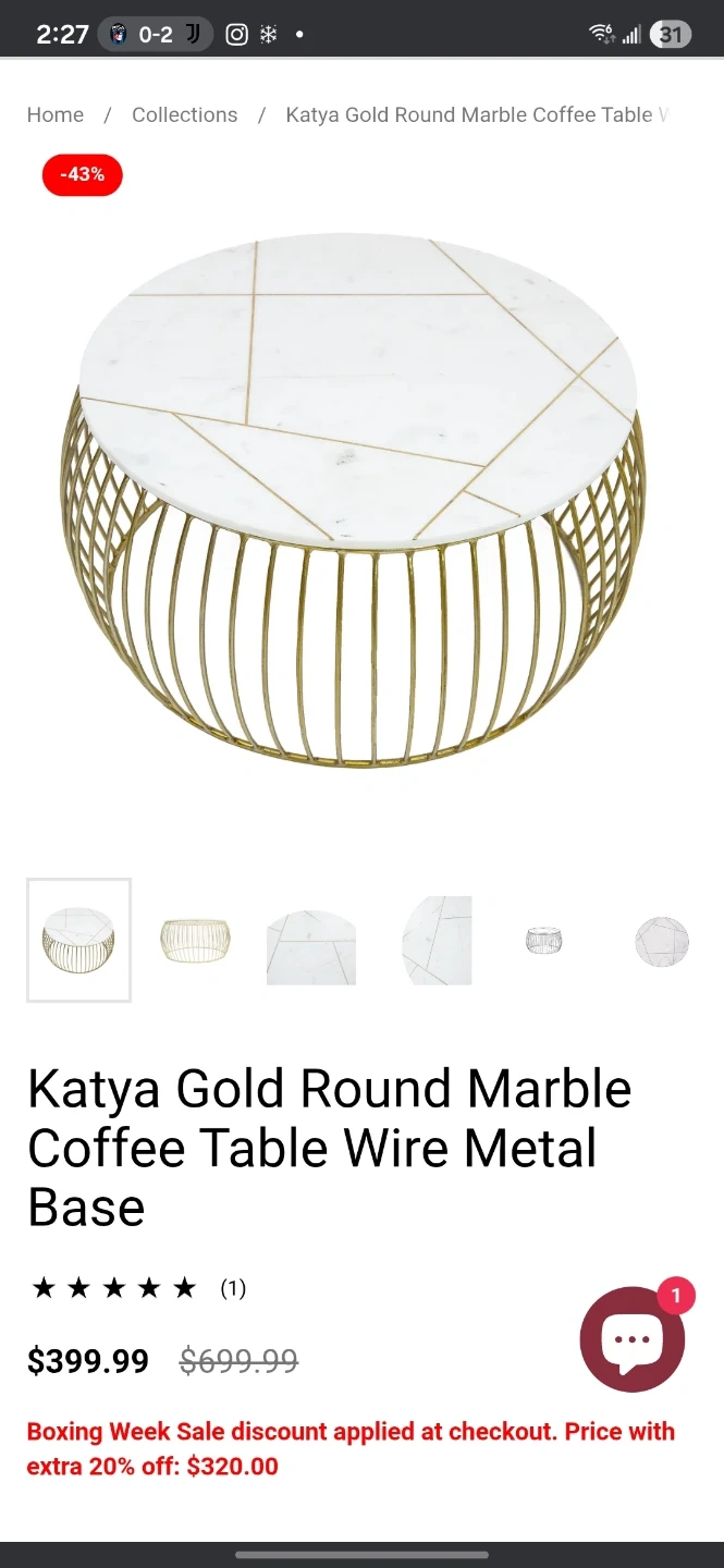 Selling a Katya Gold Round Marble Coffee Table with a wire metal base. It's a beautiful piece that originally retailed for $399.99. The table features a stylish marble top with gold accents and a unique wire base. Perfect for adding a touch of elegance to your living room!