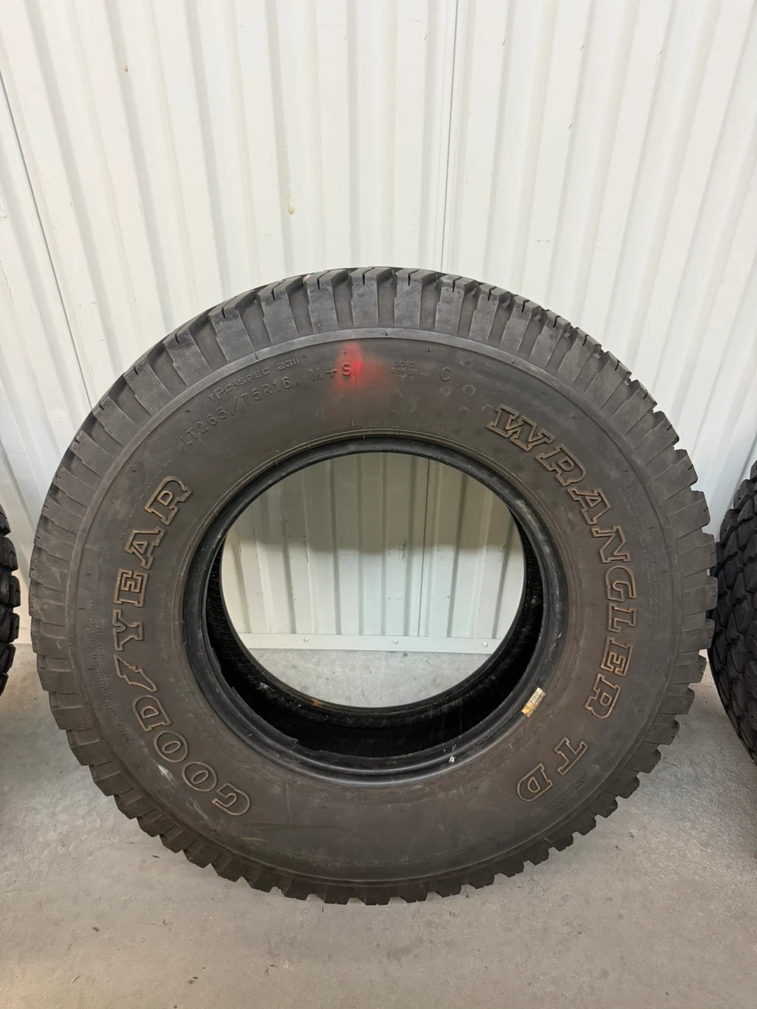 Selling a set of Goodyear Wrangler TD tires, size LT265/75R16. They are in good condition and ready for your vehicle!