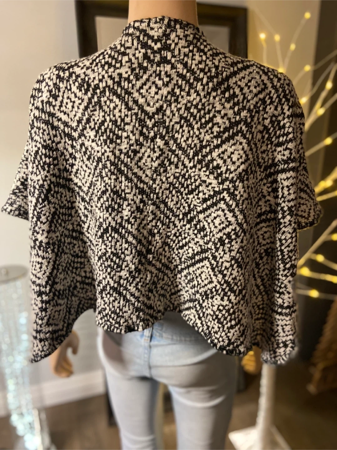 It features a stylish black and white pattern that will add a unique touch to any outfit.