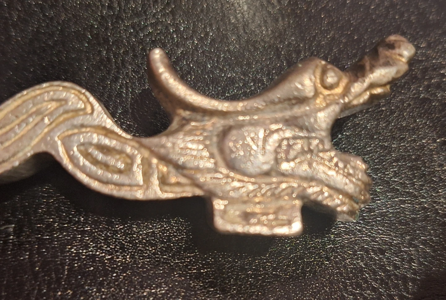 Here's a set of four vintage chopstick and spoon holders featuring a unique dragon design. Silver-tone metal finish.