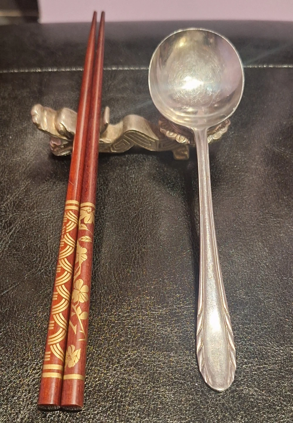 Vintage Chinese Dragon Chopstick and Spoon Holders - Set of 4