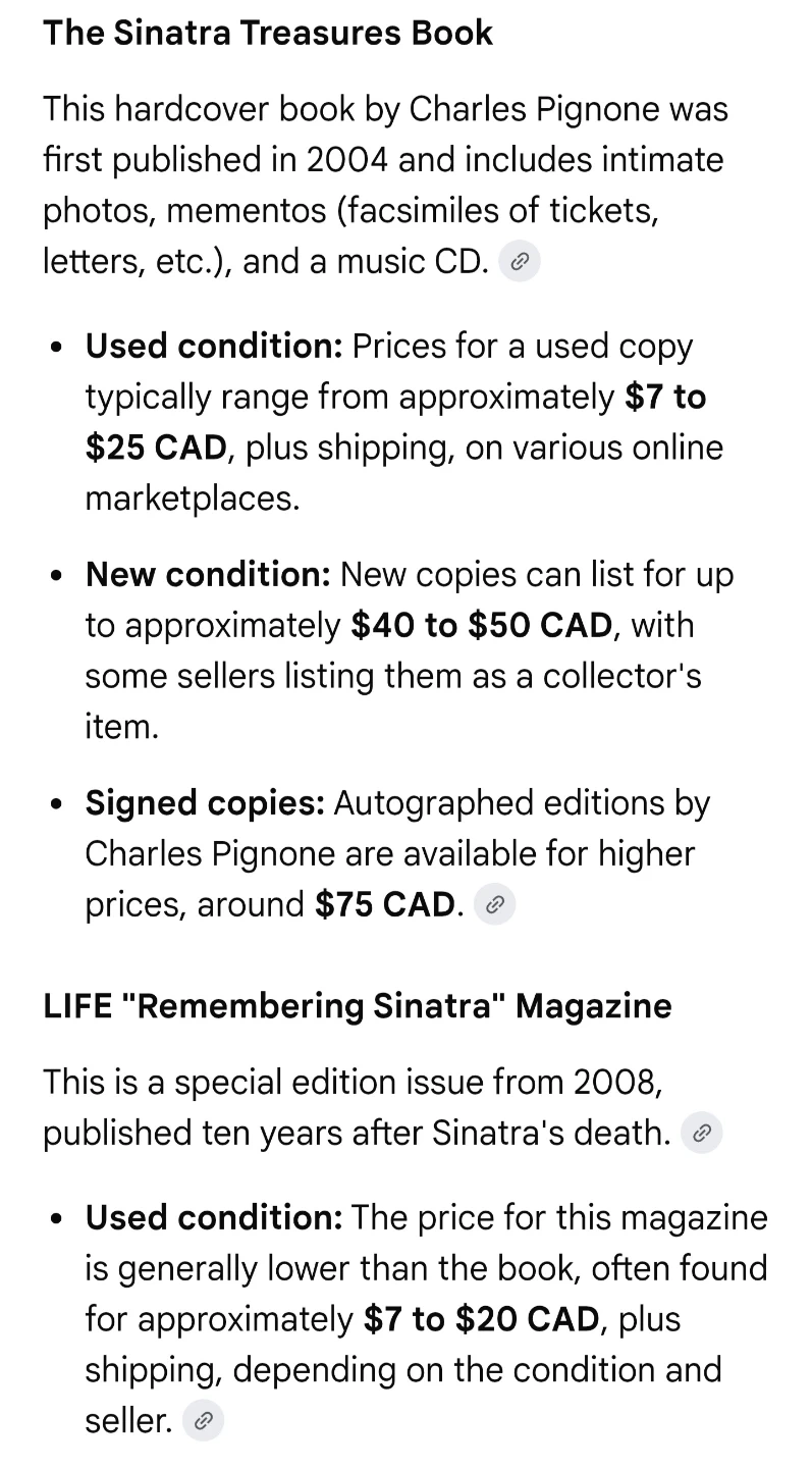 Selling two books about Frank Sinatra: