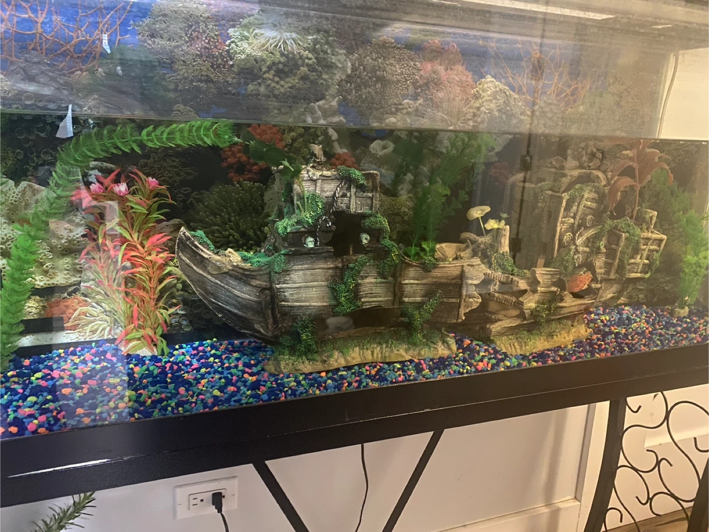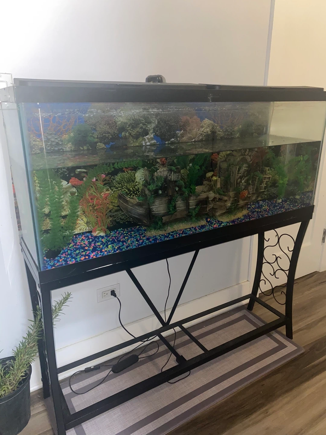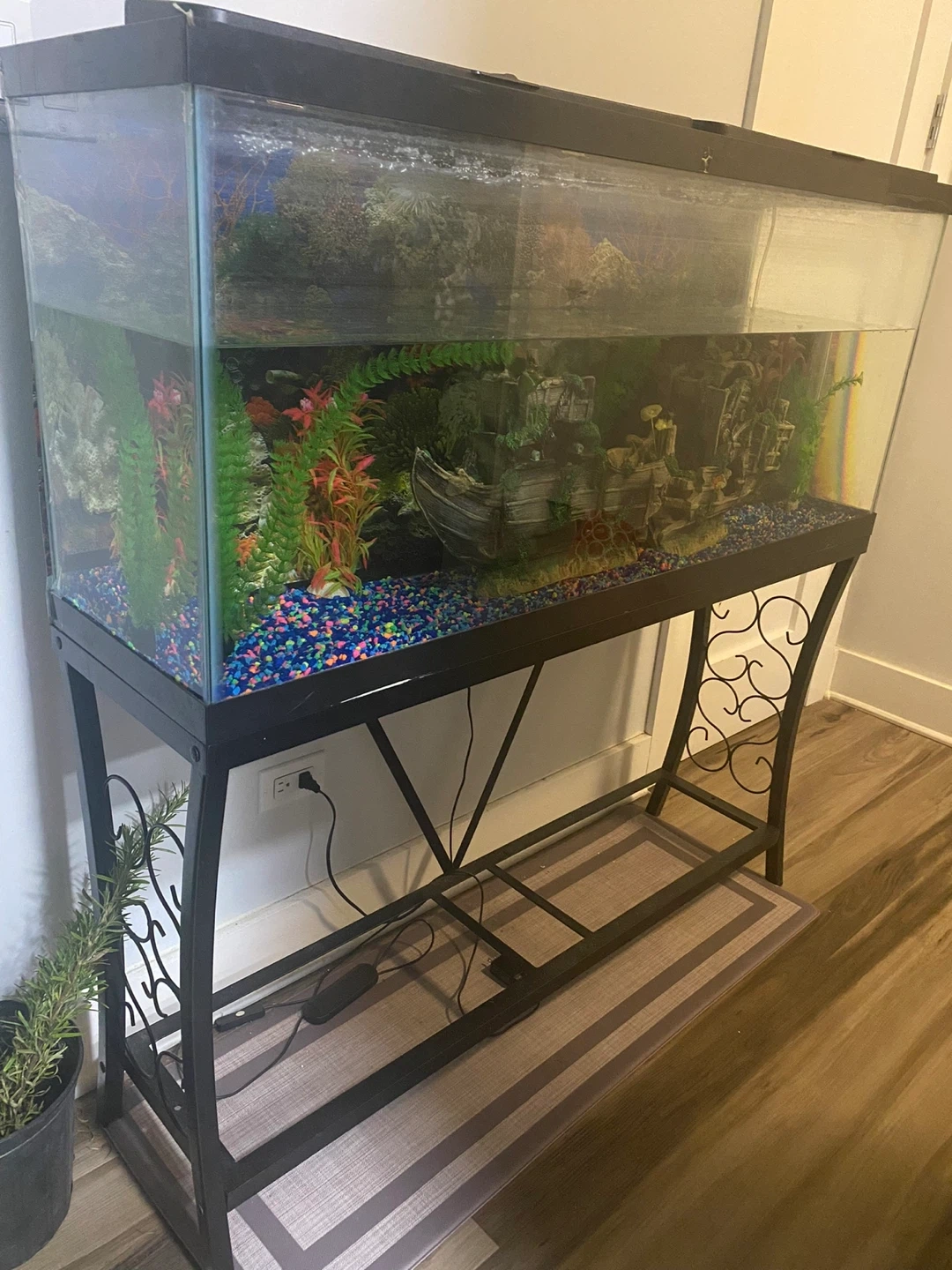 Selling a used fish tank that comes with a stand. It's perfect for setting up a beautiful underwater world in your home. The tank has been well-maintained. Ready for a new home!