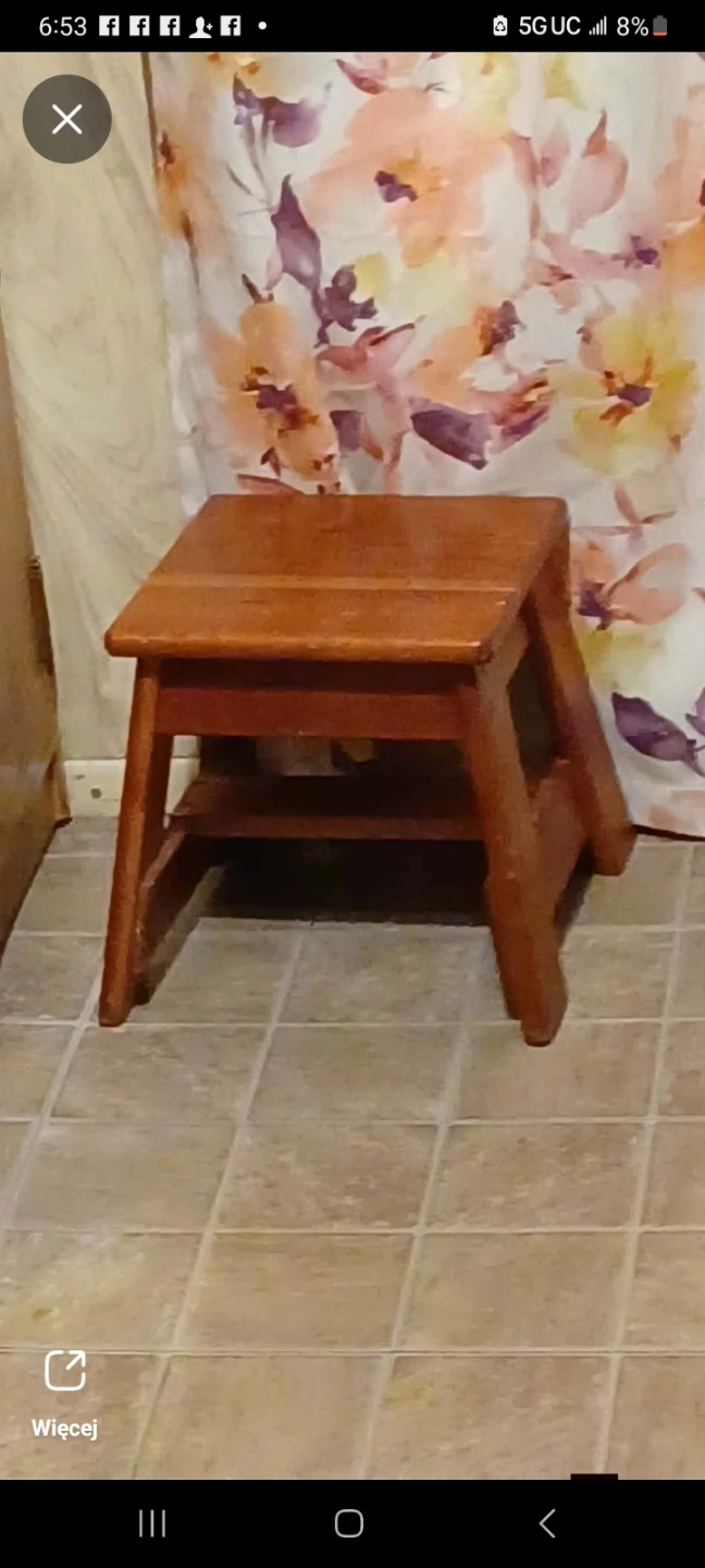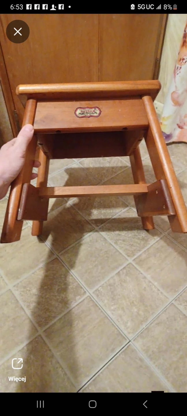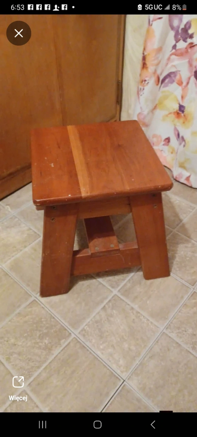 Selling a vintage wooden step stool. It's in good condition and perfect for reaching those high shelves or giving the kids a boost. It has a nice, sturdy build and a classic look that fits well in any home. It has a small shelf underneath the top step.