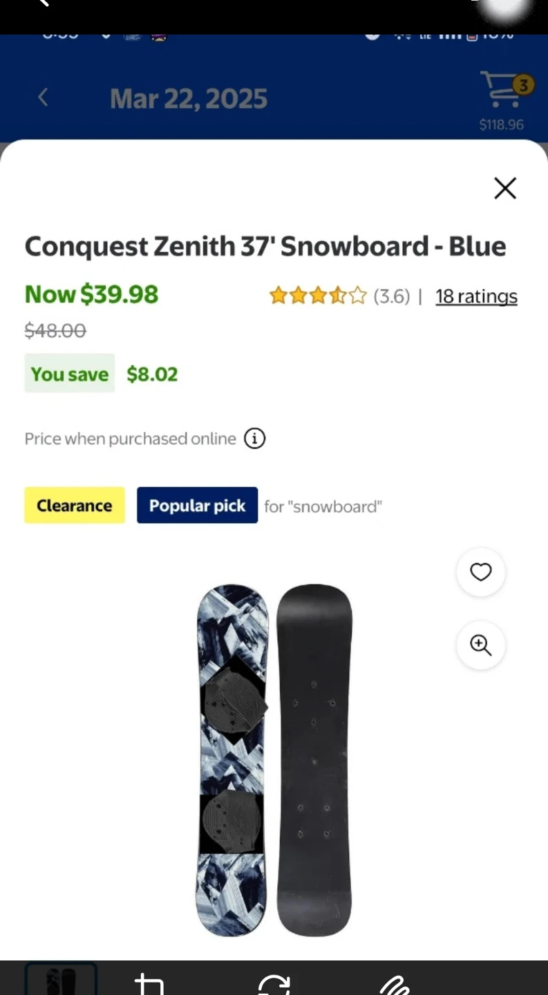 1 / 11 / 1Buy & SellBrandnew Conquest Zenith 37' Snowboard - BlueBrandnew Conquest Zenith 37' Snowboard - Blue$25Selling a Conquest Zenith 37' Snowboard in blue! Brandnew perfect for gifts π. $30 or Best offer but no low balling WHERE TO MEETSilverthorn schoolView MapSELLERverifiedjebaEglinton W2349 reviews0 chatsΒ·1 favoritesΒ·67 viewsSEND CHAT TO SELLERHi jeba! Iβm interested in your listing.Hi jeba! Iβm interested in your listing.Get the Karrot app to chatSign In to chat