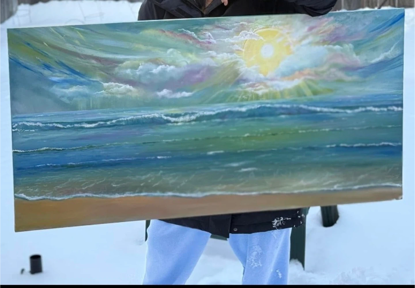 Original mixed media painting on 48” X 24” on 100% cotton duck canvas is stretched over a solid wood.