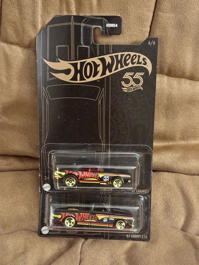I am selling a new Hot Wheels 55th Anniversary set featuring a '67 Camaro and '67 Chevy C10. These collectibles are in mint condition, still sealed in their original packaging. They would make a great gift for the Hot Wheels collector in your life. Get them today! * Limited Edition * 55th Anniversary Series * Die-Cast Metal Considering similar Hot Wheels sets' prices and rarity, I am listing this for $30. If the ad is up, then yes, it is still available!