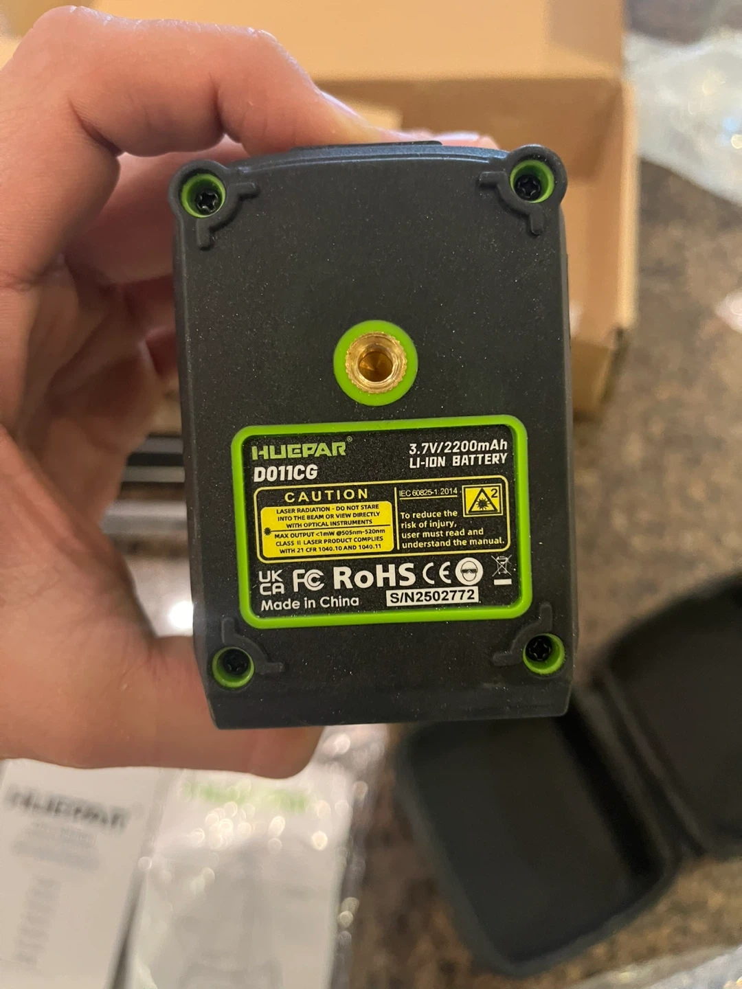 Selling a brand new Huepar D011CG Cross Line Laser Level, never used and still in its original box! It comes with all the original components, including the user manual, tripod, carrying case, and USB charging cable. This laser level is perfect for various home improvement and construction projects.